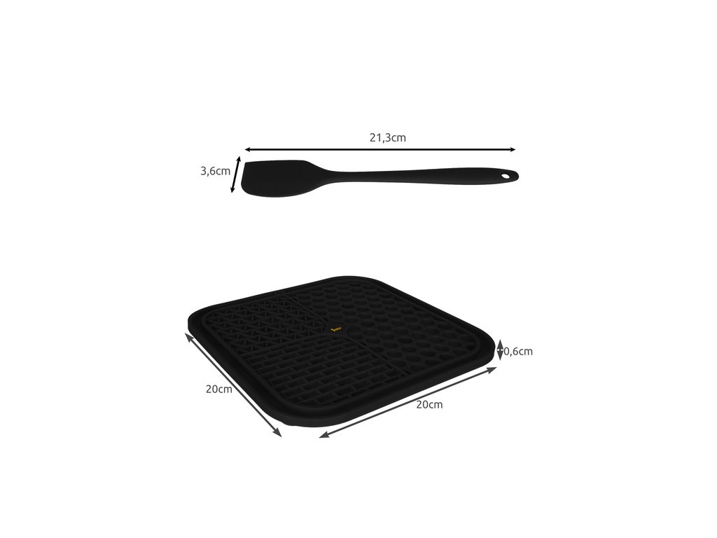 Podložka je vyrobená z pevného silikónu, ktorý je bezpečný pre zvieratá a odolný voči hryzeniu. Silikón sa ľahko umýva, neabsorbuje pachy a vydržuje dlhodobo. Spodná strana má silné prísavky, ktoré stabilne držia podložku na vane, sprche alebo dlážke. Gumové výstupky sú mäkké na jazyk, no odolné voči opotrebeniu a umývaniu v umývačke.