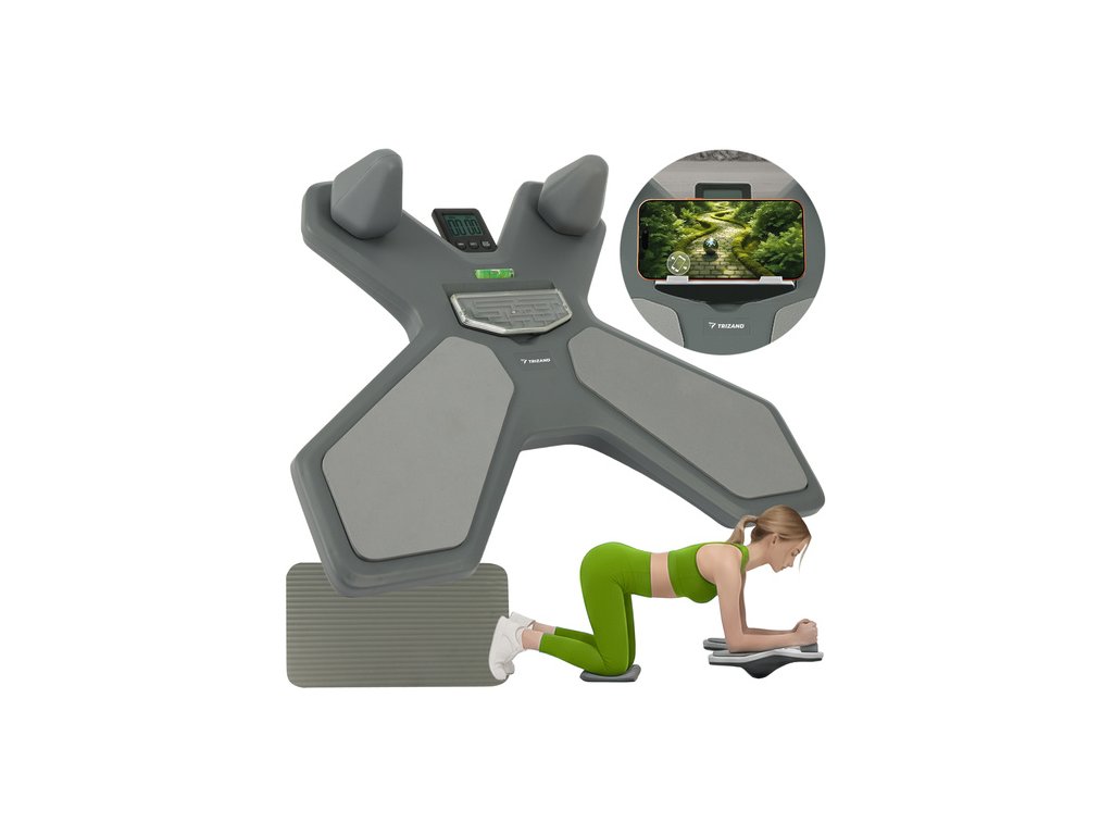 Trizand kombinuje viaceré pomôcky do jedného zariadenia: plank dosku, balančný tréner, rehab platformu, časovač a držiak na telefón. Získate viac funkcií pri nižšej investícii a neblokujete priestor doma.