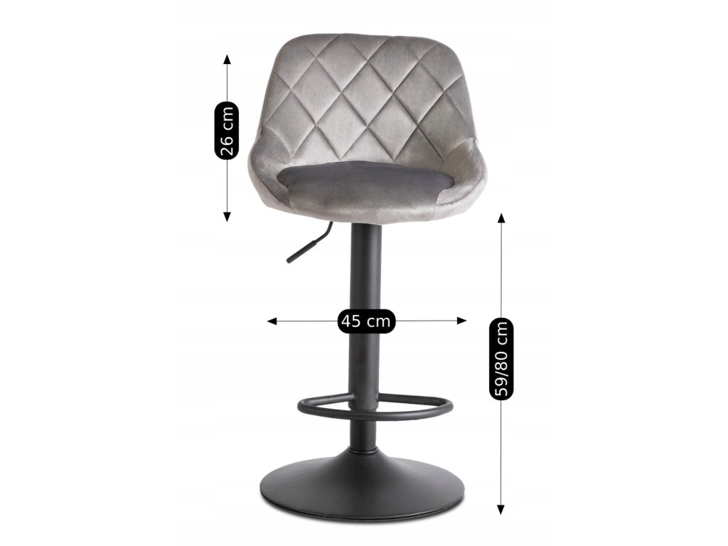 Sedák je otočný o 360° a jeho výška je nastaviteľná v rozmedzí 59 až 80 cm, funkčnosť poskytuje pohodlie a možnosť prispôsobiť si sedenie presne podľa výšky baru, ostrovčeka alebo pracovnej plochy.