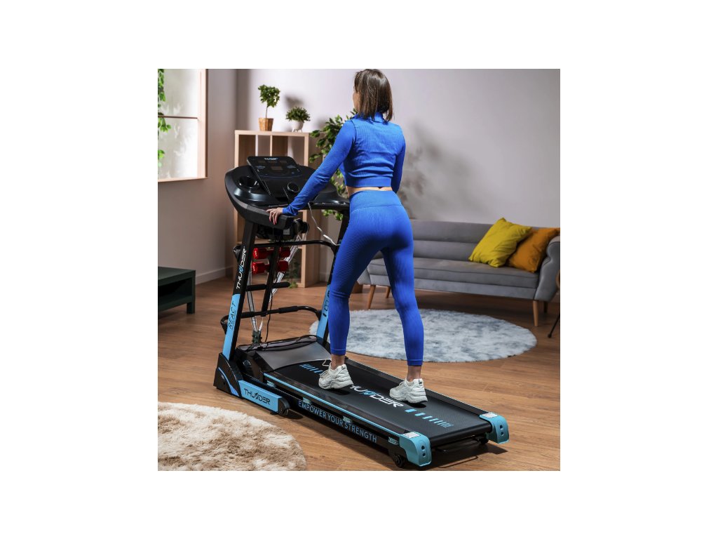 Elektrický bežecký pas Thunder React DS Black je vybavený možnosťou nastavenia rýchlosti od 0,8 km/h do 18 km/h, čo ho robí ideálnym pre rôzne tréningové úrovne, od chôdze až po intenzívne behy. Automatický sklon ponúka 15 úrovní, ktoré umožňujú simulovať beh do kopca, čím zlepšujú vytrvalosť a silu. Motor s konštantným výkonom 3 HP zabezpečuje, že pás beží plynulo aj pri vysokej záťaži.