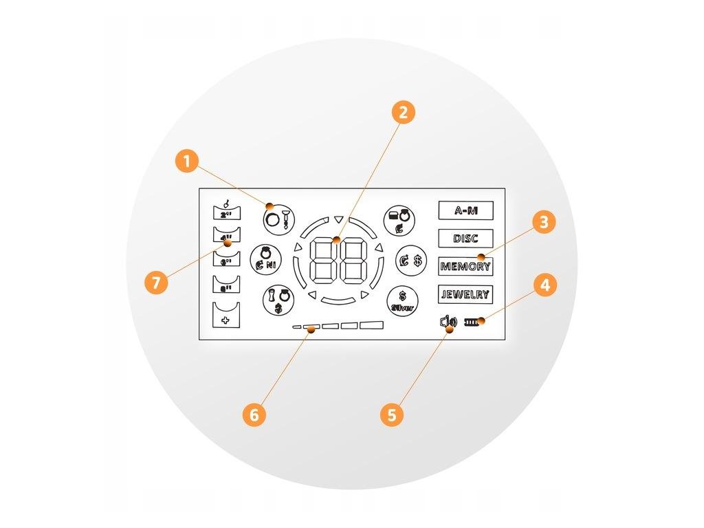 - digitálne cieľové ID digitálna stupnica od 0 do 99 zobrazená na obrazovke, označujúca stupeň hodnoty kovu (čím vyššie číslo, tým hodnotnejší kov)