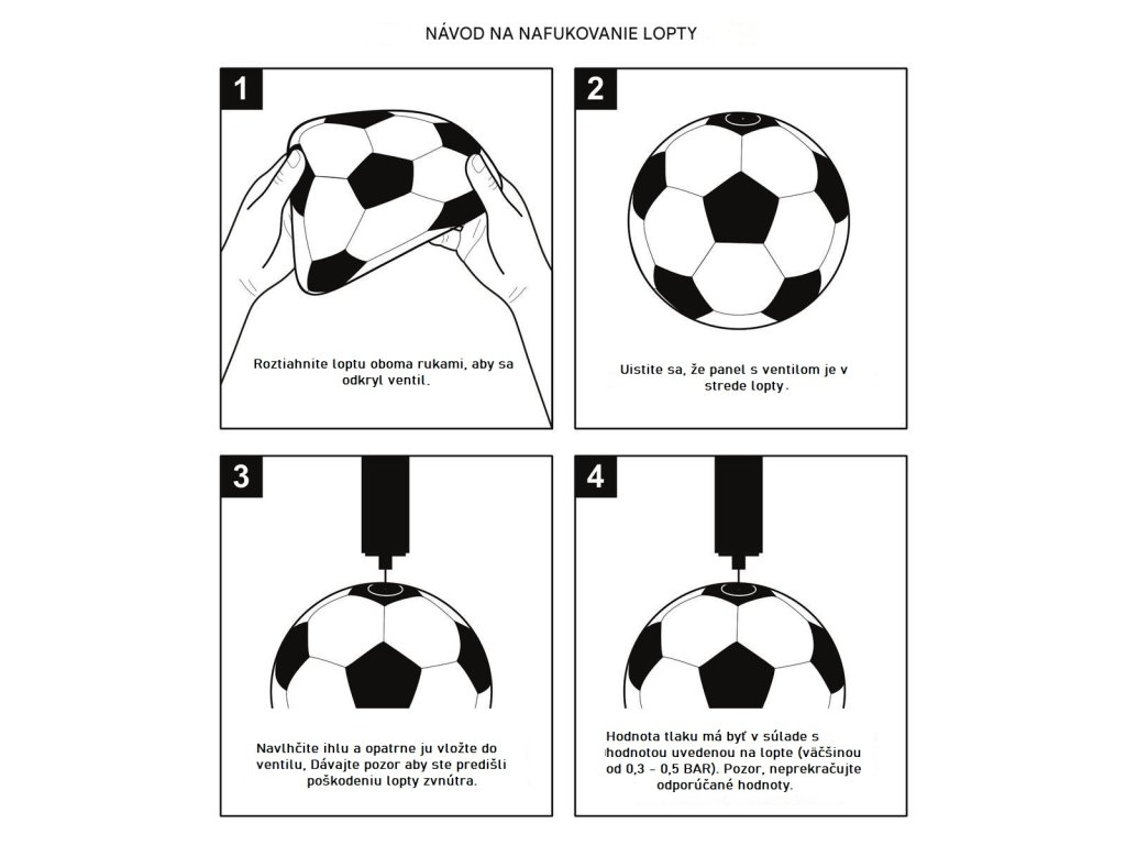 Lopta sa dodáva nenafúknutá a pri nafukovaní by sa mala používať len vopred navlhčená ihla, aby sa zabránilo poškodeniu ventilu. Nafukujte loptu na tlak 4-6 PSI pre optimálnu hrateľnosť.