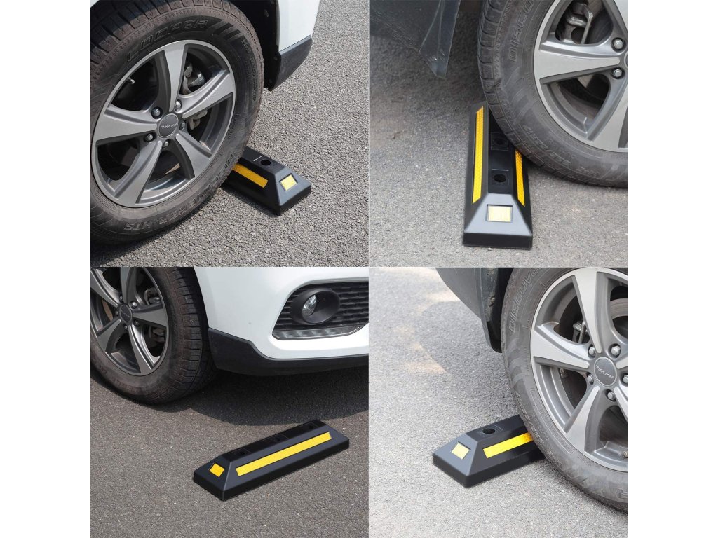 Dorazy kolies sú vynikajúcim riešením pre domácu garáž s obmedzeným parkovacím miestom a sú tiež skvelé pre použitie na veľkých parkoviskách. Doraz je vyrobený z nárazuvzdornej gumy a je vybavený reflexnými prvkami pre zabezpečenie výbornej viditeľnosti. Tiež chránia steny tým, že zabraňujú priamemu kontaktu vozidiel so stenou. Umožňujú vodičom rýchlo a presne zaparkovať na malých miestach. Vďaka plochému prevedeniu nedôjde k poškodeniu vozidiel s nízkym podvozkom. Jednoduchá inštalácia - kompletné s bariérovými kolíkmi na pripevnenie.