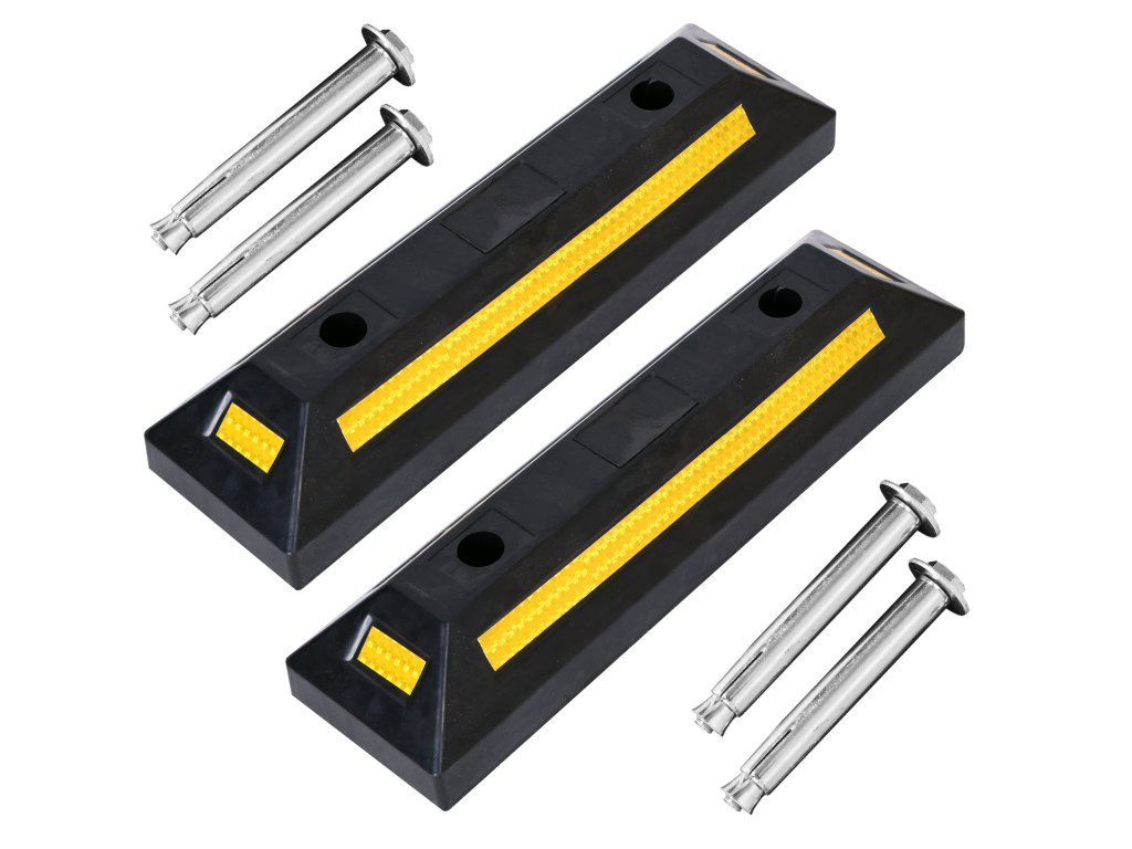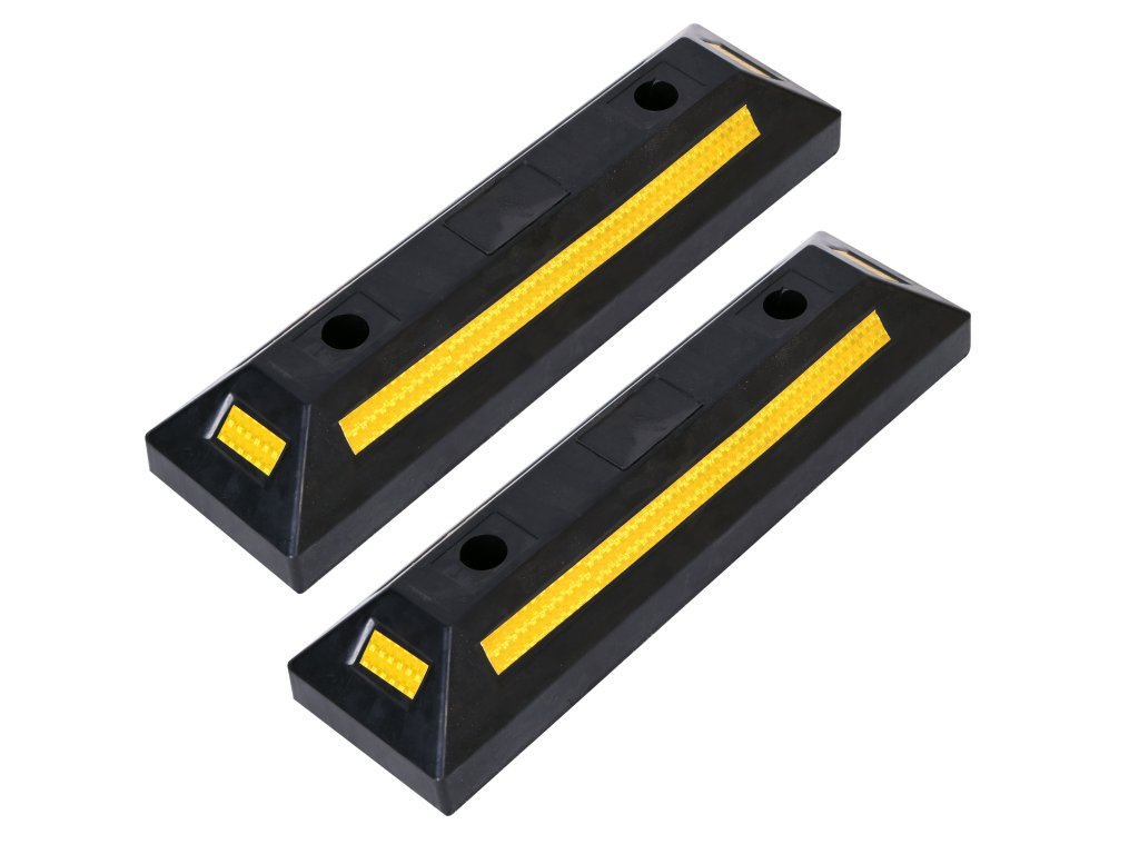 Dorazy kolies sú vynikajúcim riešením pre domácu garáž s obmedzeným parkovacím miestom a sú tiež skvelé pre použitie na veľkých parkoviskách. Doraz je vyrobený z nárazuvzdornej gumy a je vybavený reflexnými prvkami pre zabezpečenie výbornej viditeľnosti. Tiež chránia steny tým, že zabraňujú priamemu kontaktu vozidiel so stenou. Umožňujú vodičom rýchlo a presne zaparkovať na malých miestach. Vďaka plochému prevedeniu nedôjde k poškodeniu vozidiel s nízkym podvozkom. Jednoduchá inštalácia - kompletné s bariérovými kolíkmi na pripevnenie.
