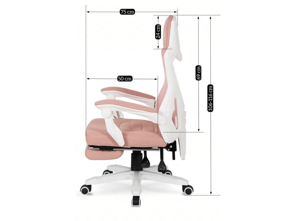 Kreslo kombinuje moderný dizajn s vysokou kvalitou, zaručuje plné pohodlie pri dlhých sedeniach za PC alebo pracovným stolom. S polohovateľnou opierkou chrbta, nastaviteľnou výškou, výsuvnou podnožkou, opierkou hlavy a lakťovou opierkou si môžete vychutnať maximálne pohodlie a podporu. Môžete si nastaviť výšku sedadla a uhol sklonu operadla v rozsahu 90 až 120 stupňov vám umožní prispôsobiť kreslo presne podľa vašich potrieb.