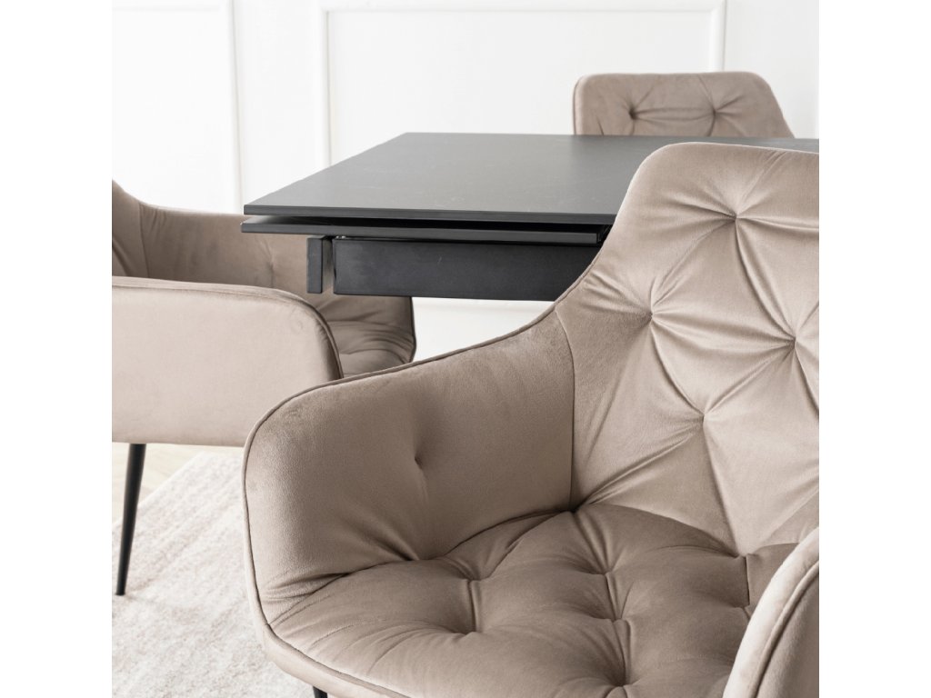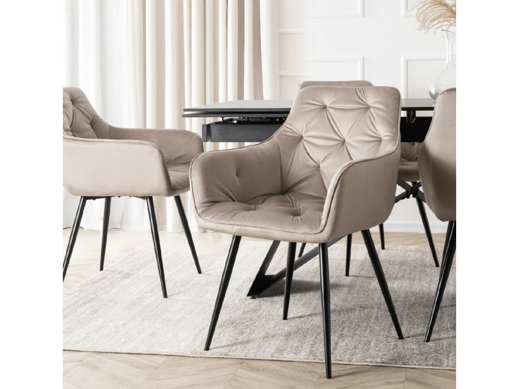 Jedálenská stolička Modesto je dokonalou voľbou pre tých, ktorí túžia po modernom a štýlovom interiéri. Vďaka jej nadčasovému dizajnu a kvalitným materiálom vdychuje do každej kuchyne alebo jedálne nezameniteľnú atmosféru. Stolička je čalúnená jemnou a mäkkou velúrovou látkou, ktorá zaručuje maximálny komfort a pohodlie pri sedení.