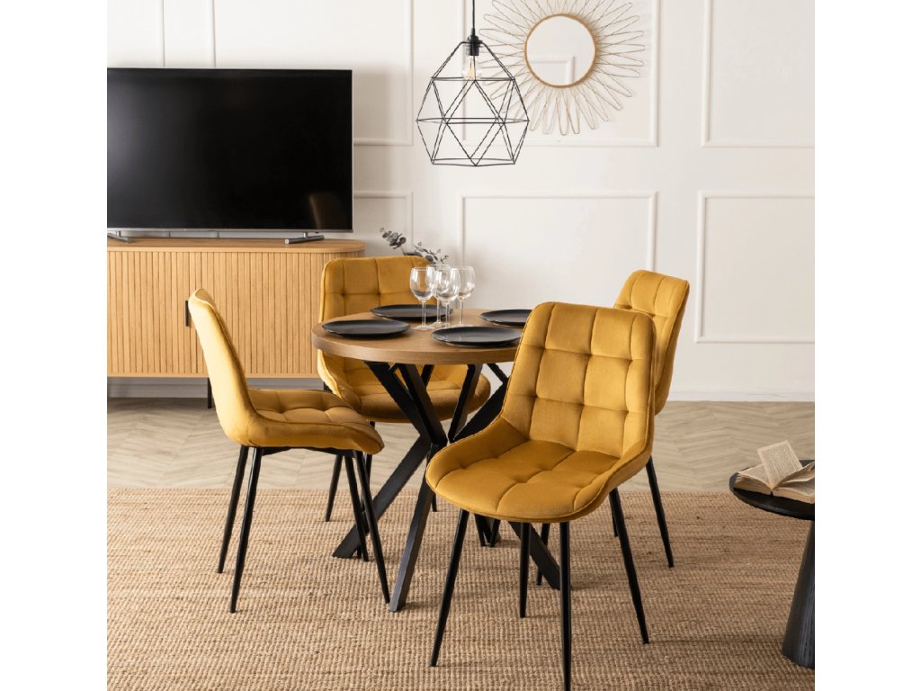 Jedálenská stolička horčičová velúr Chris spája originalitu, komfort a kvalitu. Prináša do interiéru teplo, eleganciu a dotyk luxusu, ktorý oceníte pri každom sedení.