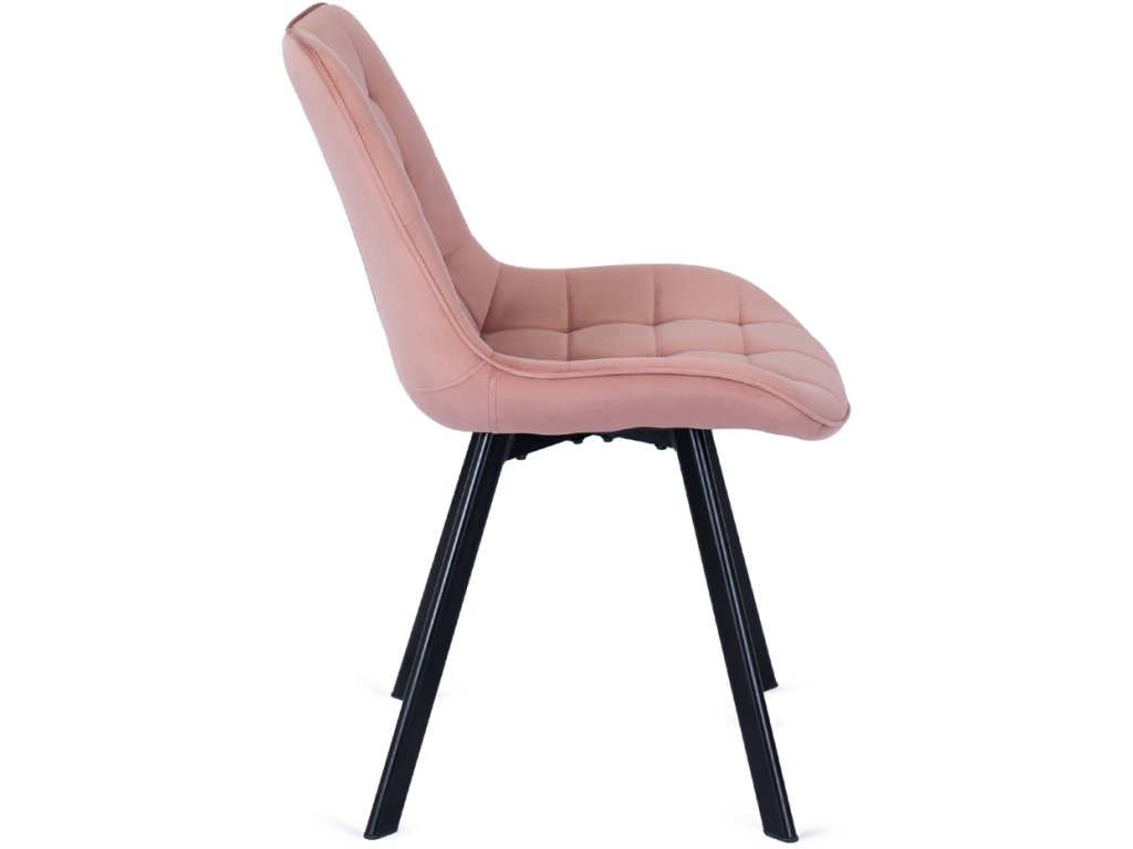 Jedálenská stolička ružová velúr Rick má oceľový rám s práškovou povrchovou úpravou, ktorý zabezpečuje stabilitu a pevnosť. Konštrukcia je navrhnutá tak, aby stolička zostala stabilná aj pri každodennom používaní.