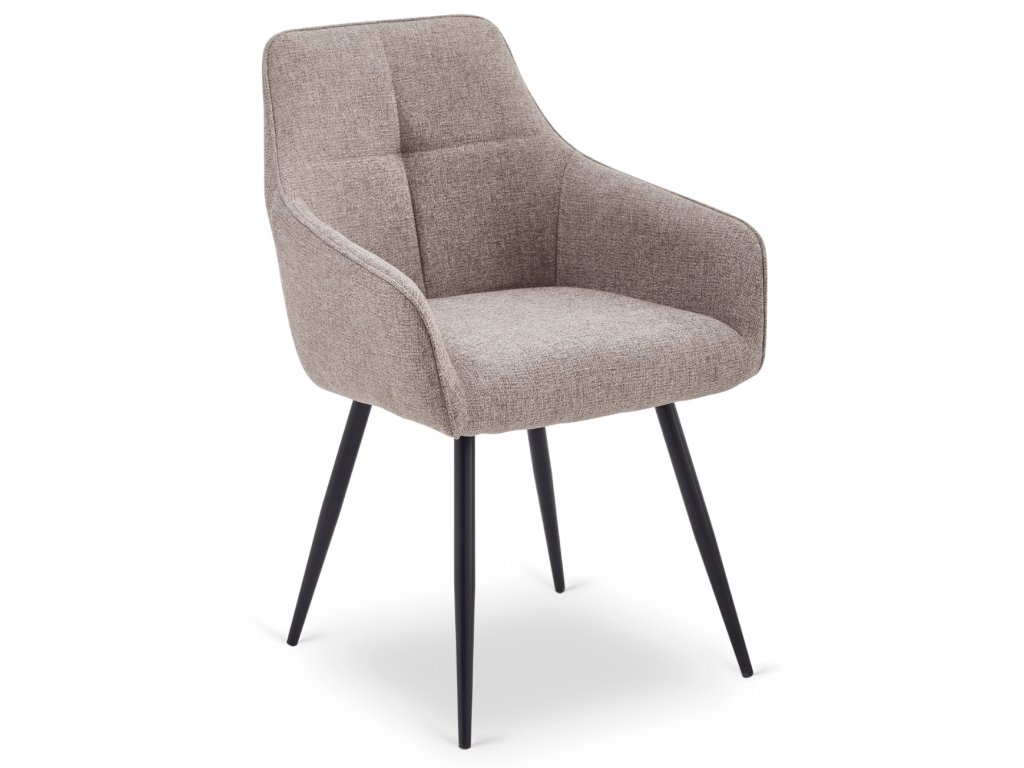Stolička je čalúnená kvalitnou látkou príjemnou na dotyk, ktorá je odolná voči každodennému používaniu. Svetlo hnedý odtieň prináša do interiéru teplo a harmóniu, zatiaľ čo pevná kovová konštrukcia v čiernej farbe zaručuje stabilitu a bezpečnosť. Mäkké 10 cm hrubé sedadlo so zabudovanými pružinami poskytuje komfort aj pri dlhšom sedení.