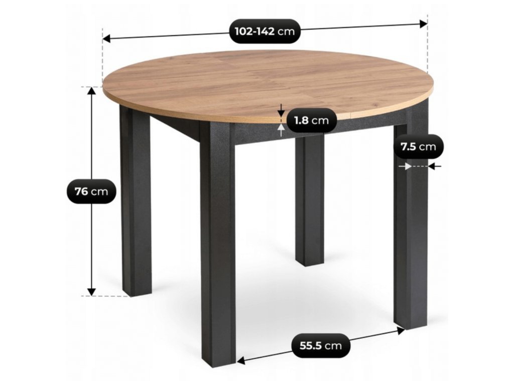 Stôl Harry ponúka flexibilitu pre bežné dni aj väčšie návštevy. V základnom rozmere má priemer 102 cm, takže šetrí miesto, no po rozložení sa zväčší na 142 cm, čo umožní pohodlne usadiť viac osôb.