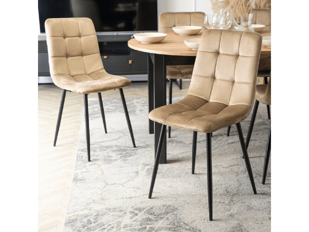 Stoličky peru patria k najobľúbenejším, pretože v sebe spájajú eleganciu, komfort a praktickosť. Béžový zamat pôsobí luxusne, no je zároveň odolný voči každodennému používaniu.