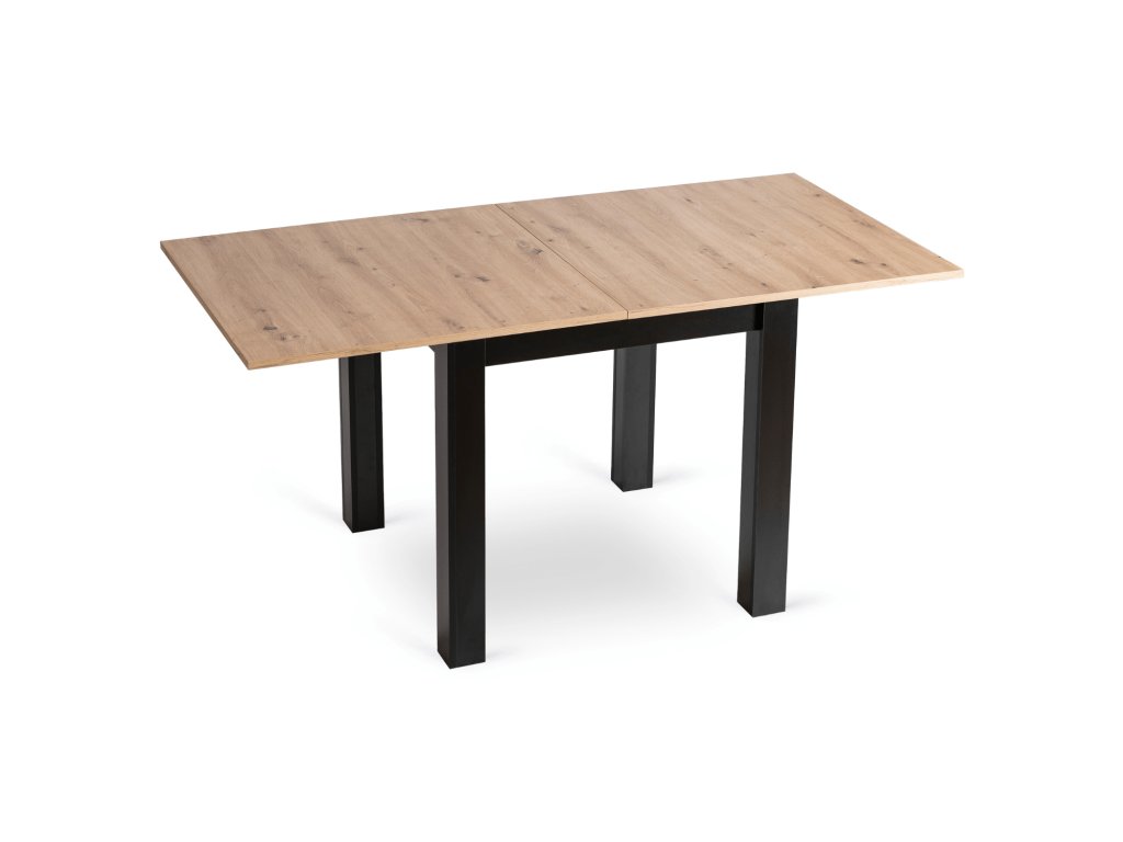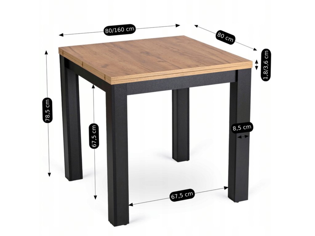Štvorcový stôl Max ponúka ideálne riešenie tam, kde treba šetriť priestor, no zároveň mať možnosť usadiť návštevu. Jeho doska v dekore remeselného duba pôsobí prirodzene a teplo, pričom čierna podnož dodáva moderný kontrast. Vďaka jednoduchému rozkladaciemu mechanizmu sa dĺžka stola zväčší z 80 cm na 160 cm, takže poslúži pri bežnom stolovaní aj pri rodinných stretnutiach.