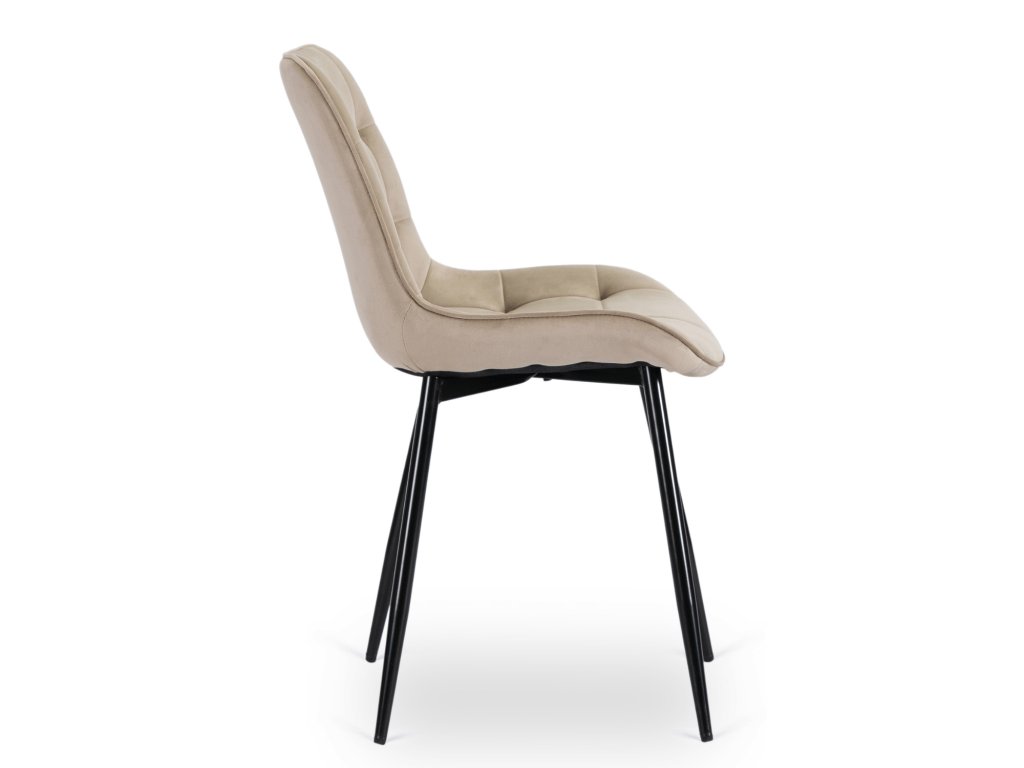 Štyri stoličky Chris v béžovom zamatovom čalúnení ponúkajú mimoriadne pohodlné sedenie, ktoré oceníte pri jedle, práci aj dlhších rozhovoroch pri stole. Mäkké čalúnenie je príjemné na dotyk a ergonomické operadlo poskytuje oporu chrbtici. Kovové čierne nohy dodávajú moderný vzhľad a zabezpečujú stabilitu.