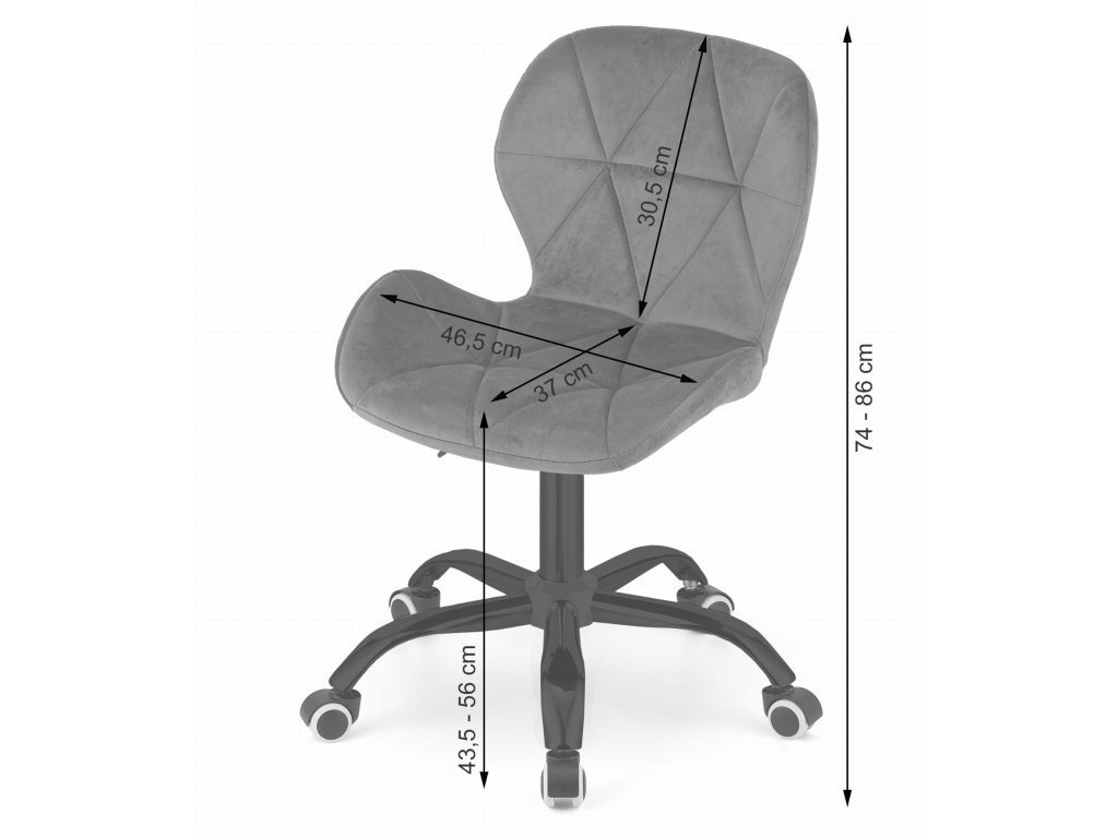 Stolička je vyrobená z velúru, ktorý sa ľahko čistí a zároveň pôsobí elegantne. Pevná 5 lúčová základňa z kovu so stabilnými kolieskami umožňuje plynulý pohyb bez poškriabania podlahy. Výška sa nastavuje jednoducho pomocou spodnej páky pod sedákom, takže si ju prispôsobíte presne podľa potreby.