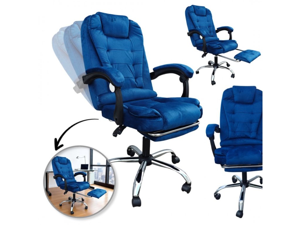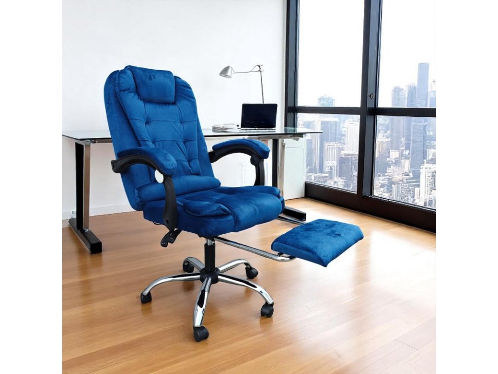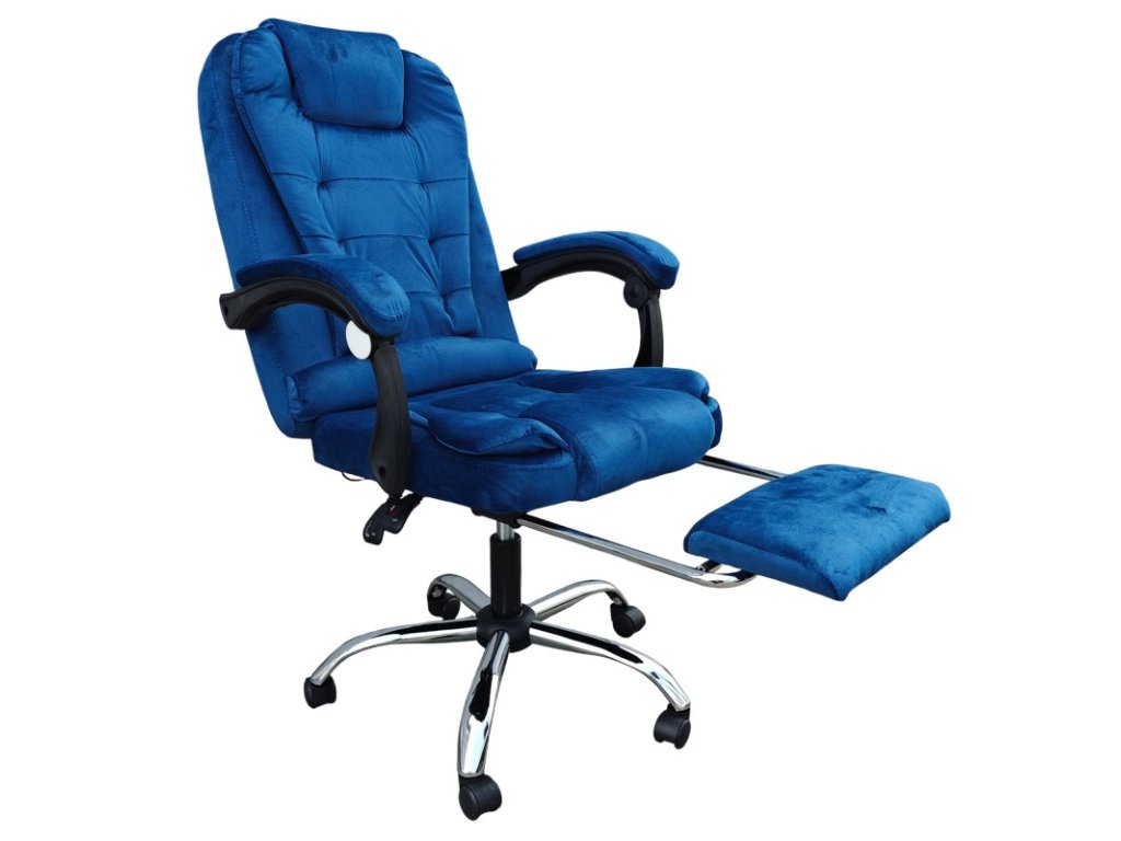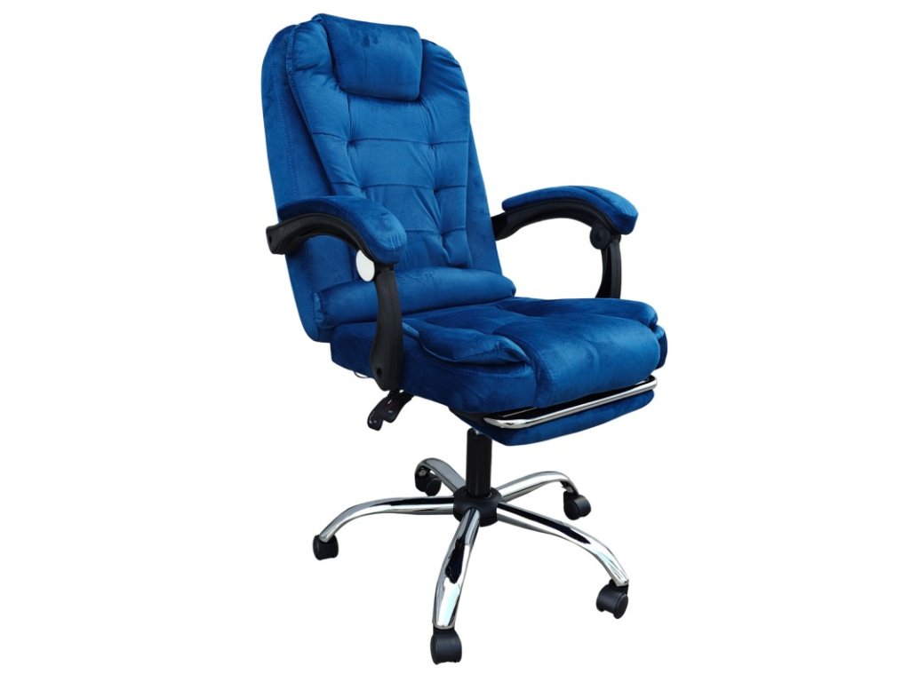 Kancelárske kreslo polohovateľné velúr modré Boss + masážna funkcia zadarmo