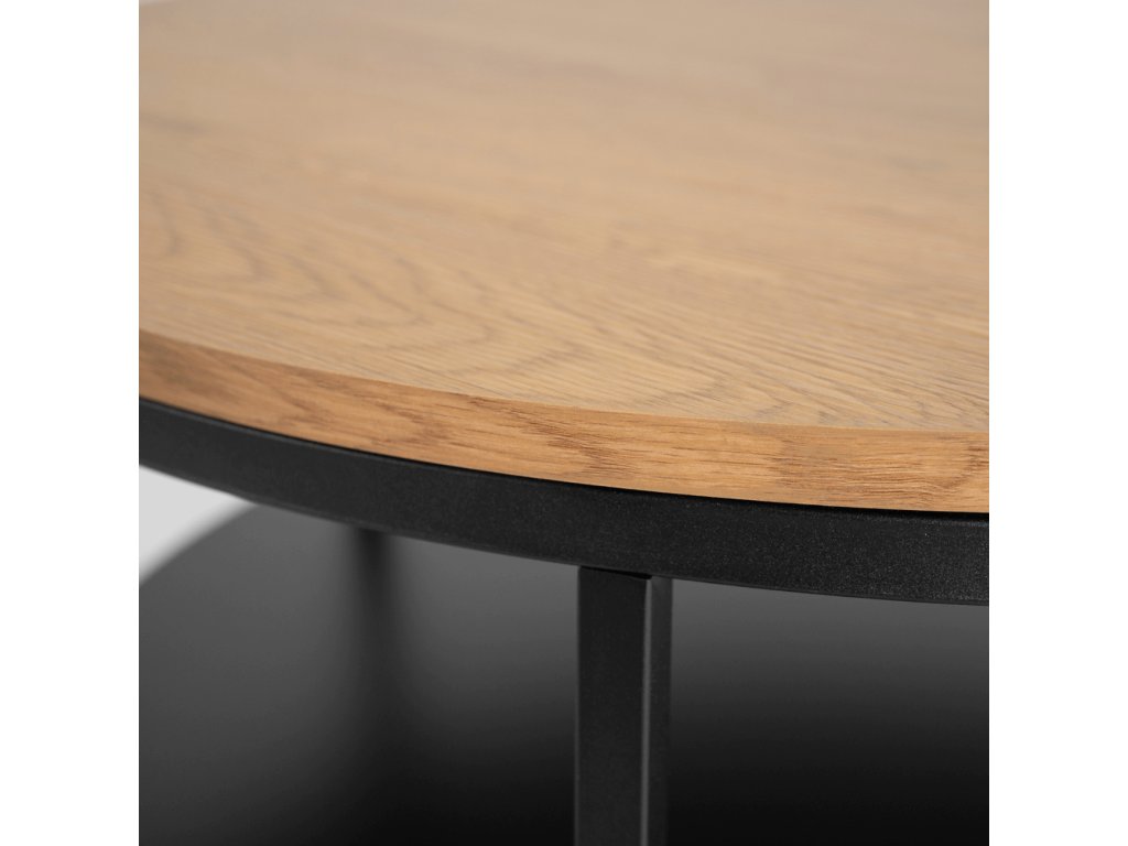 Vizuálne spojenie čierneho kovu a dubového dekoru robí z konferenčného stolíka univerzálny kus nábytku. Zapadne do moderných, industriálnych aj škandinávskych interiérov bez potreby ďalších úprav. Pôsobí čisto, vyvážene a nenútene dopĺňa ostatný nábytok v miestnosti.