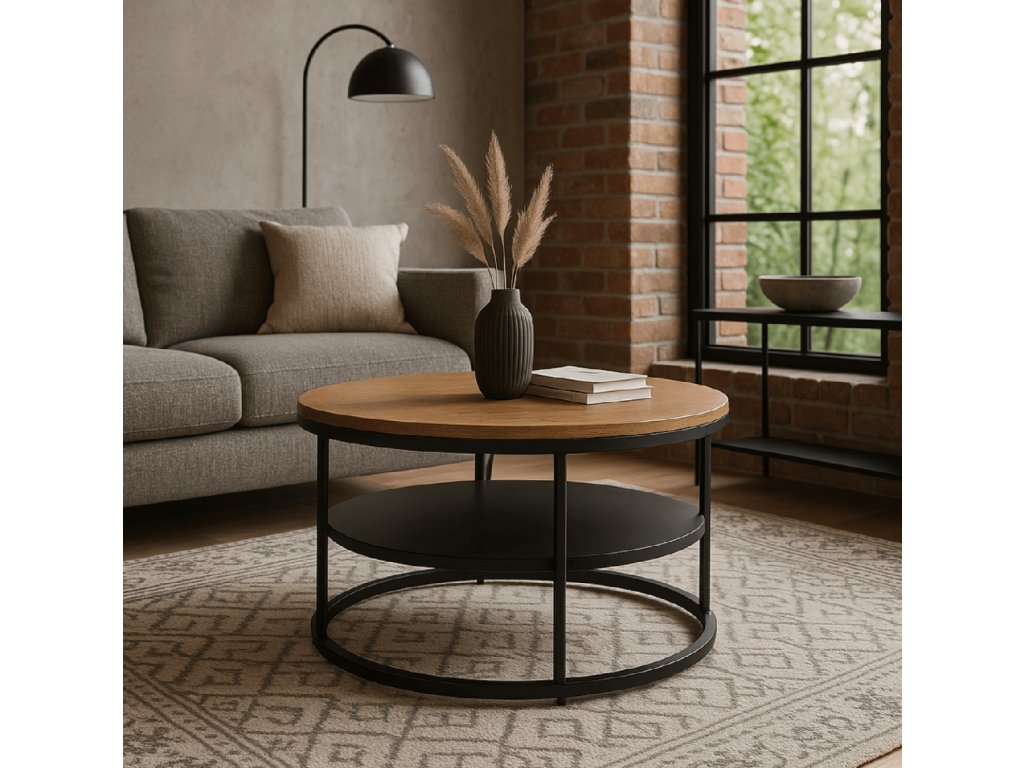 Okrúhly tvar konferenčného stolíka uľahčuje pohyb v priestore a pôsobí prirodzene aj v menších miestnostiach. Stolík nevytvára ostré línie, nezavadzia pri chôdzi a vizuálne zjemňuje celkový dojem obývačky. Je vhodný ako stredový prvok pri sedačke alebo kresle.