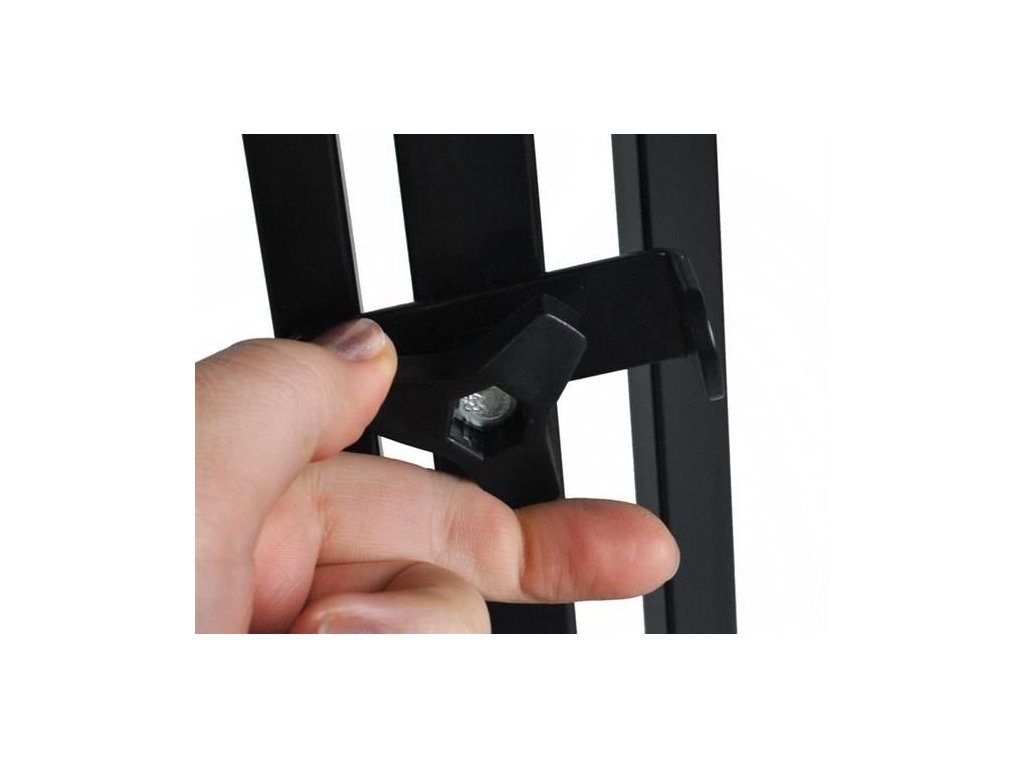 Brána sa zamyká z vnútornej strany, rovnako ako aj na kovovú kľučku v prednej časti s otočným gombíkom, dieťa bránu samo neotvorí.