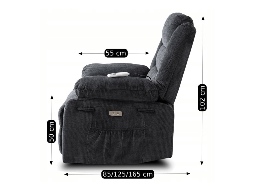 Masážna funkcia kresla umožňuje masírovať vybrané časti tela v intenzite, ktorú si zvolíte. Intenzita sa ovláda pomocou diaľkového ovládača, ktorý je súčasťou súpravy. Pár klikov a môžete si užívať relaxačnú masáž, ktorá uvoľňuje napäté svaly a odstraňuje ich únavu. Široká škála masážnych programov umožňuje prispôsobiť si ju vašim aktuálnym potrebám. Pre použitie masážnej funkcii, zapojte kreslo do elektrickej zásuvky.