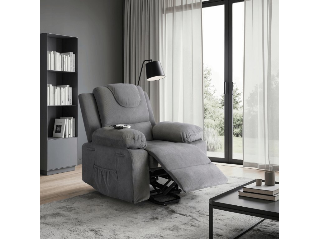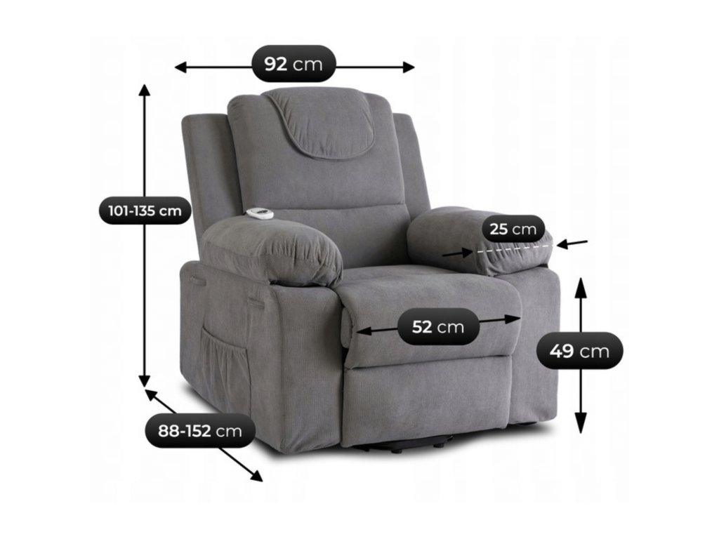 Zdvíhací mechanizmus jemne nadvihne celé kreslo, aby bolo vstávanie jednoduché a bezpečné, ideálne pre seniorov alebo osoby s obmedzenou pohyblivosťou. Praktické bočné vrecko umožní mať diaľkové ovládanie, knihu alebo smartfón vždy po ruke.