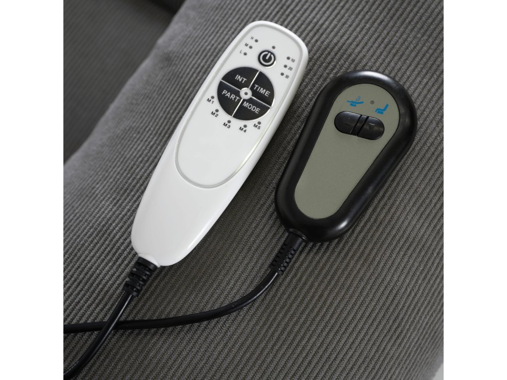 Elektrické ovládanie umožňuje plynule nastavovať operadlo, sedadlo a opierku na nohy. Masážna funkcia ponúka viacero režimov, od jemnej pulzácie až po intenzívnu vlnu, a zameria sa na konkrétne partie tela, ktoré potrebujete uvoľniť. Intenzitu aj čas masáže si jednoducho prispôsobíte pomocou samostatného diaľkového ovládača.