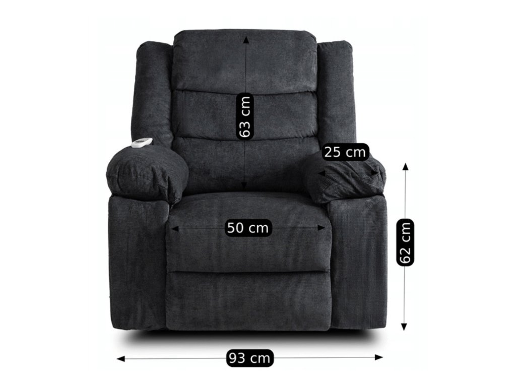 Masážna funkcia kresla umožňuje masírovať vybrané časti tela v intenzite, ktorú si zvolíte. Intenzita sa ovláda pomocou diaľkového ovládača, ktorý je súčasťou súpravy. Pár klikov a môžete si užívať relaxačnú masáž, ktorá uvoľňuje napäté svaly a odstraňuje ich únavu. Široká škála masážnych programov umožňuje prispôsobiť si ju vašim aktuálnym potrebám. Pre použitie masážnej funkcii, zapojte kreslo do elektrickej zásuvky.