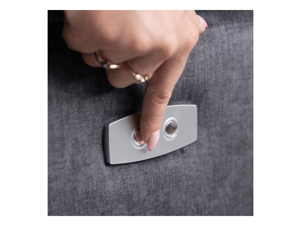 Sedadlo sa automaticky rozloží jediným pohybom. Na pravej strane pod lakťovou opierkou sú dve tlačidlá, jedno na rozloženie kresla a druhé na jej sklopenie dozadu.