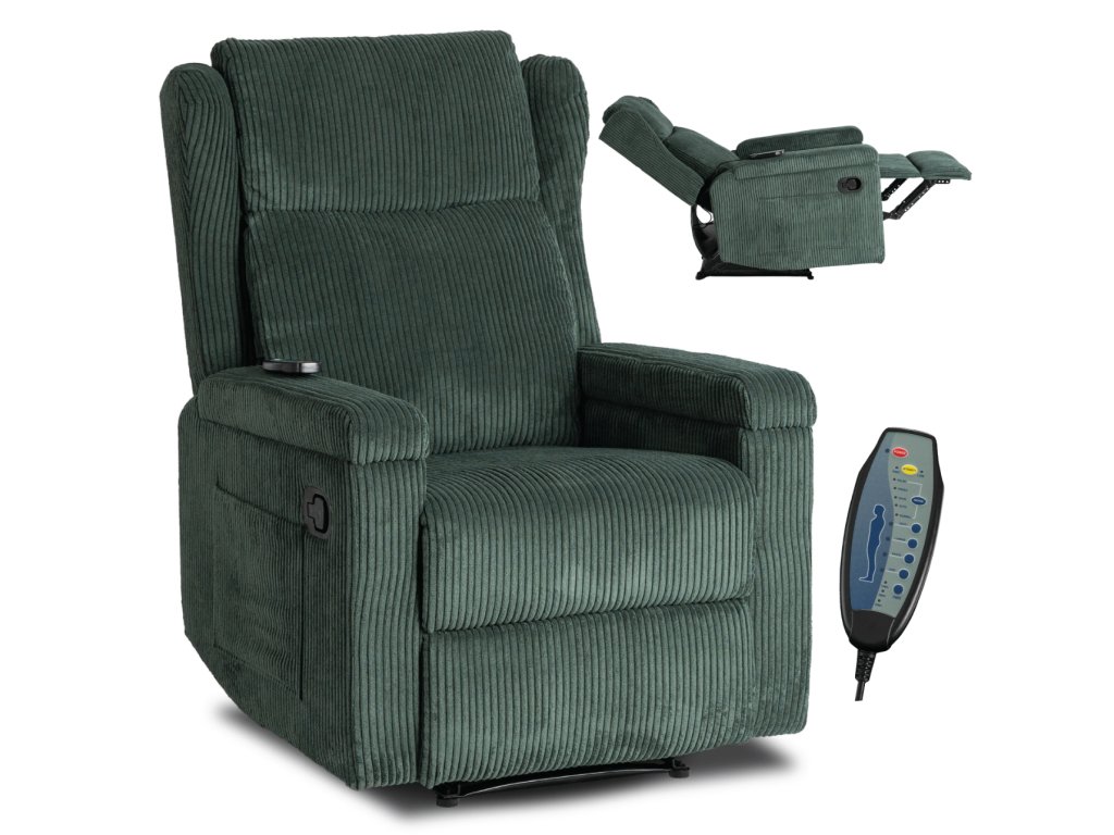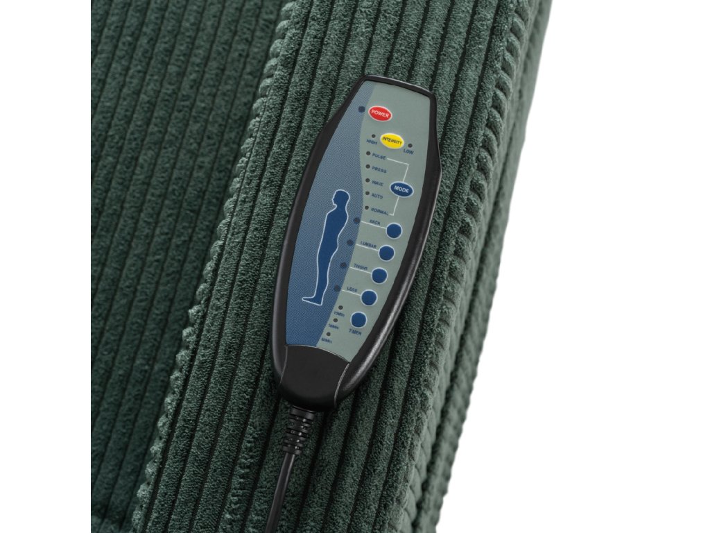 Hľadáte po práci miesto, kde zabudnete na stres a doprajete telu aj mysli zaslúžený oddych? Masážne kreslo Sebastián v zelenom menčestri spája pohodlie, funkčnosť a moderný štýl, aby vám prinieslo okamžitú úľavu od napätia.