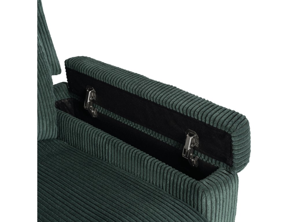 Čalúnenie z jemného menčestru s typickou rebrovanou štruktúrou je nielen príjemné na dotyk, ale aj odolné voči každodennému používaniu. Zelený odtieň prináša modernú eleganciu a ľahko zapadne do rôzne ladených interiérov. Kovová konštrukcia poskytuje stabilitu a pevnosť, čo zaručuje bezpečné a pohodlné používanie.