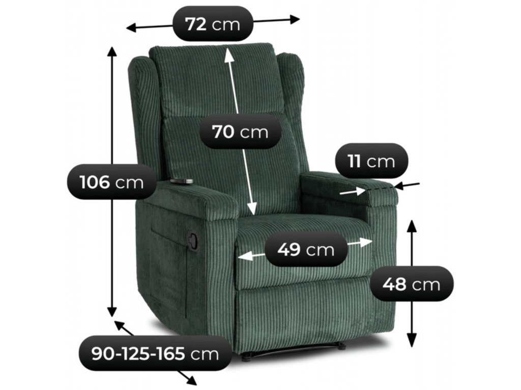 Vďaka masážnej funkcii si môžete dopriať uvoľnenie v oblasti nôh, stehien, bedier aj chrbta. Ovládanie prebieha jednoducho cez diaľkový ovládač, kde si zvolíte intenzitu aj čas masáže podľa potreby. Praktické detaily ako otvárateľné podrúčky s úložným priestorom a nastaviteľná opierka nôh zvyšujú komfort pri každom použití.