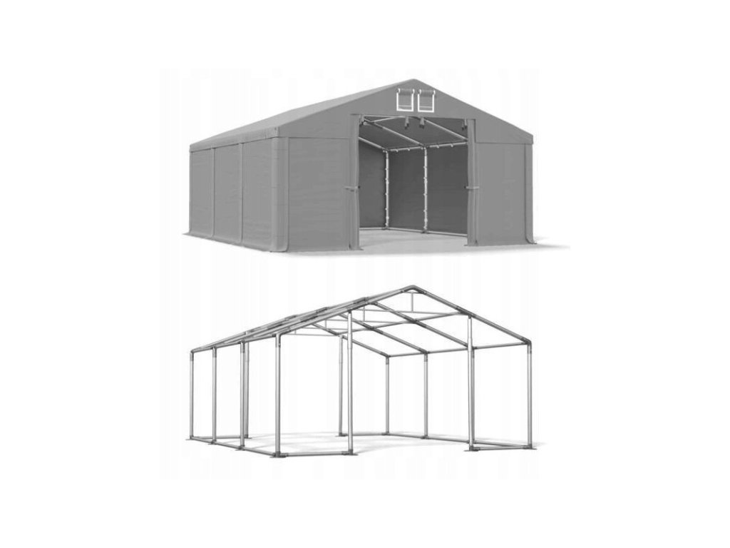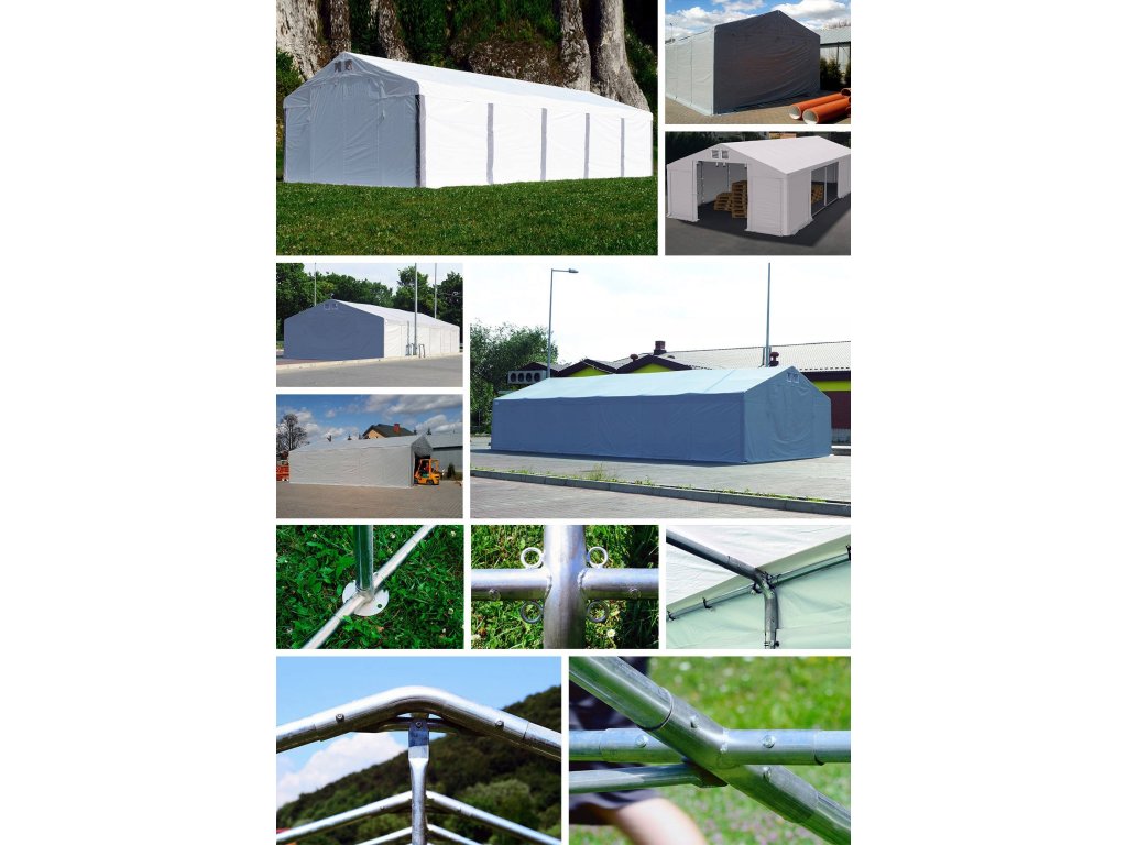 Pevná konštrukcia z pozinkovaných rúr s priemerom 50 mm. Rychlá montáž konštrukcie, vďaka tomu možné ľahke premiestniť na iné miesto. Hala je určená na skladovanie rôznych materiálov, strojov, výrobu, garaž, lakovací box, mobilný - obchodný predajný stan na rôzne akcie.