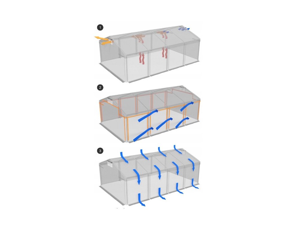- Umiestnenie dvoch vetracích okienok s navíjacími okenicami na oboch stranách strechy poskytuje správne prúdenie vzduchu vo vnútri stanu. Predchádza sa tým vzniku efektu sauny a zrážaniu vody.