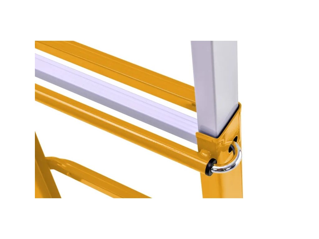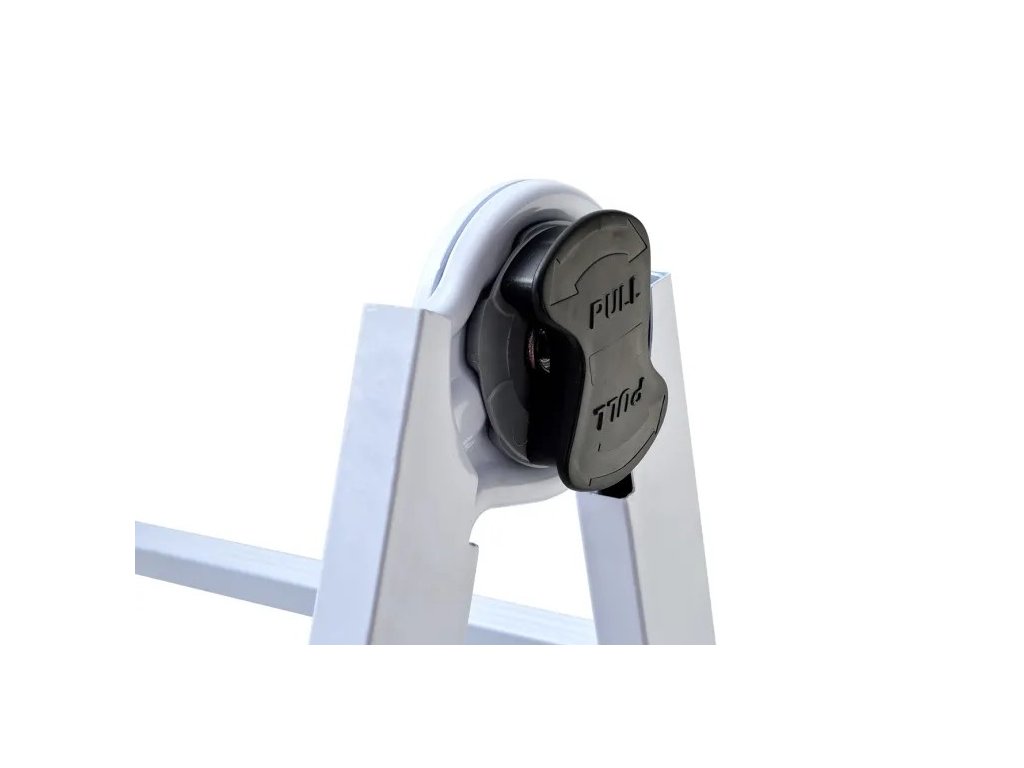 Pevné spoje a zámky zabezpečujú bezpečné uchytenie. Protišmykové nožičky a predĺžené stabilizátory zaručujú, že rebrík ostane na mieste aj na klzkom alebo nerovnom povrchu. Je odolný voči korózii, poškodeniu a rôznemu počasiu.