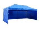 Nožnicový stan profi HQ 3 x 3 m modrý, rozmery stanu: 3 x 3 m, materiál konštrukcie: oceľ, hrúbka nohy: 0,7 mm, prierez nohy: 4 x 4 cm, spojovací systém: skrutkovaný, regulácia výšky: 190 cm, 200 cm, 210 cm, 220 cm, povrchová úprava konštrukcie: prášková farba, čierna, počet nôh: 4, strecha materiál: pogumovaný polyester, strecha hrúbka: 820D, strecha gramáž: 400 g/m², UV ochrana: áno, bočné steny: 3 kusy, materiál bočných stien: polyuretán, hrúbka bočných stien: 420D, gramáž bočných stien: 230 g/m², uchytenie bočných stien: suchý zips, rozmery v zloženom stave: 150 x 25 x 25 cm