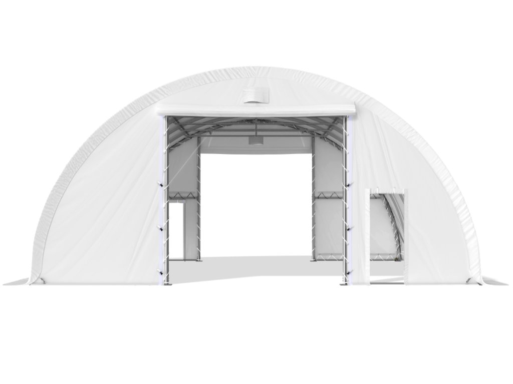 Základ haly tvorí spevnený oceľový rám s pevnými spojmi. Konštrukcia odoláva vetru, vlhkosti a bežnej záťaži v exteriéri. Vďaka systému kotvenia je možné umiestnenie na rôzne povrchy, dvor, skladový areál, poľnohospodársky pozemok alebo stavebnú plochu.