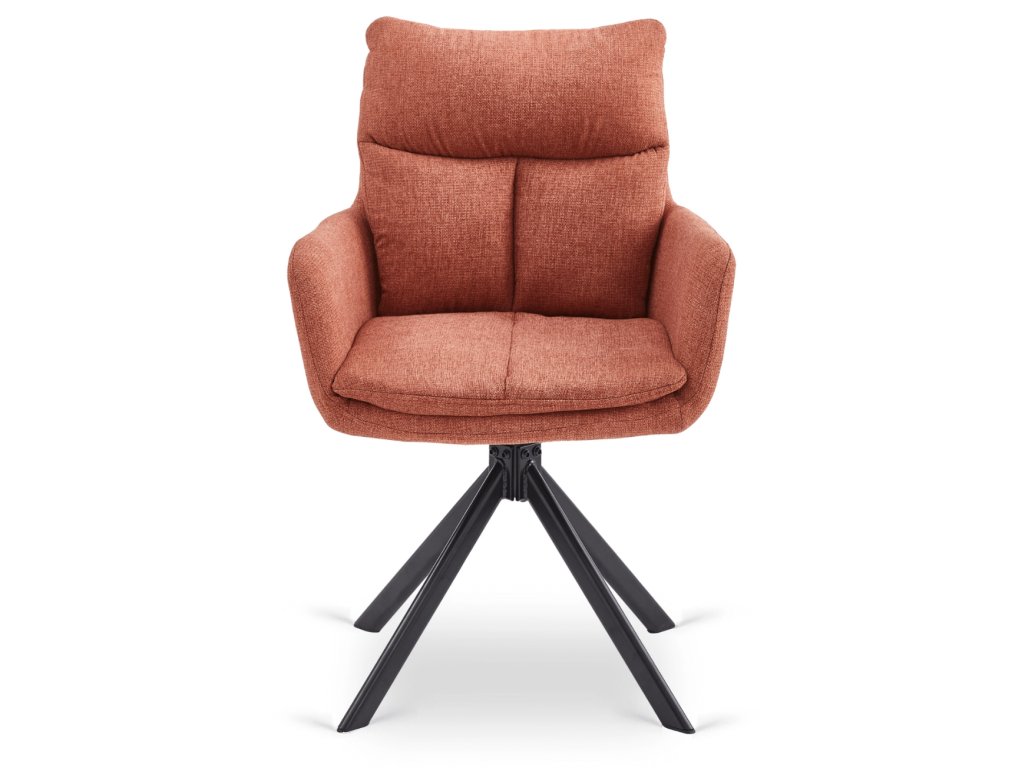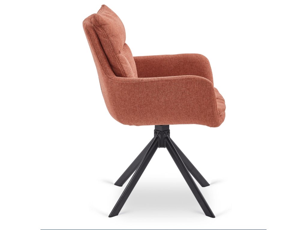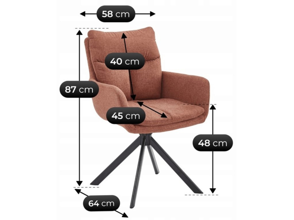 Sedacia časť má otočný mechanizmom 90° v oboch smeroch a prináša úplne nový rozmer pohodlia. Už žiadne odsúvanie od stola, stačí sa otočiť a pohodlne vstať. Mäkký vankúš so silným čalúnením zabezpečí komfort aj pri dlhšom sedení. Vďaka modernému vzhľadu a funkčnosti je stolička ideálna nielen do domácnosti, ale aj do reštaurácií, hotelov či kaviarní, kde hostia ocenia kombináciu elegancie a praktického využitia.