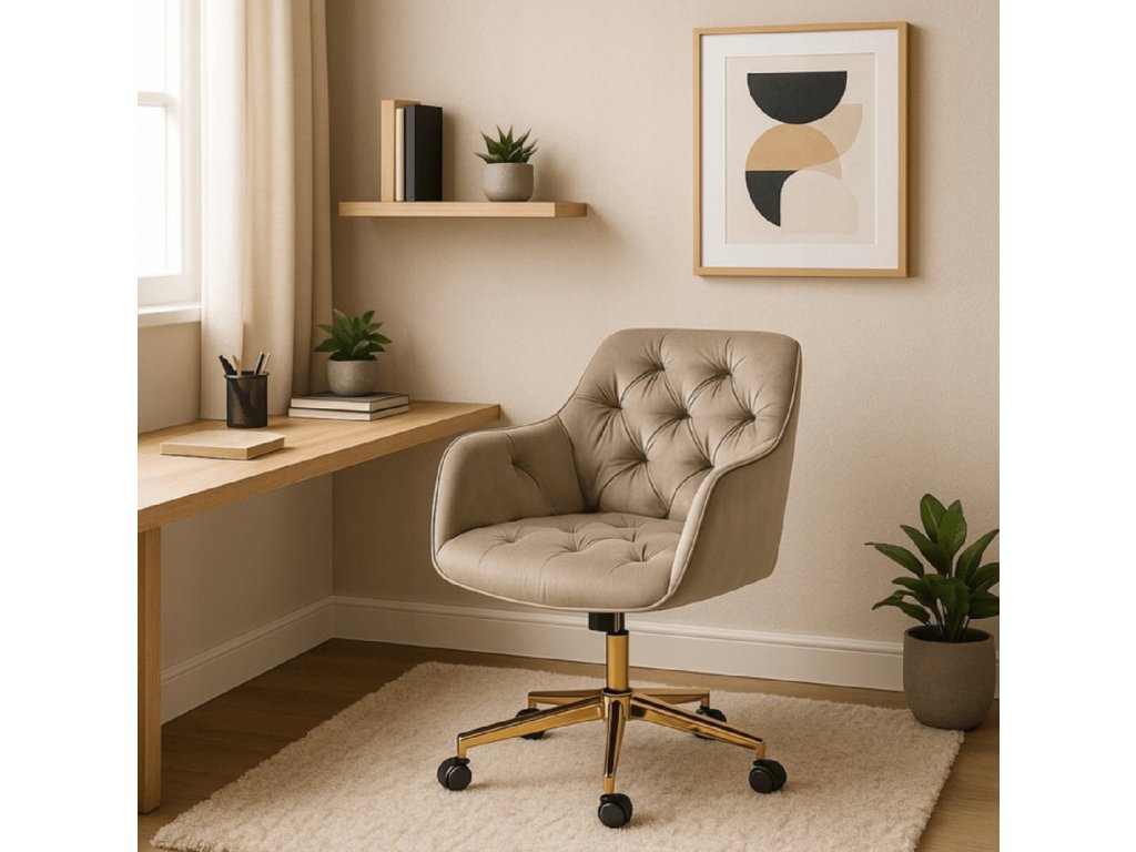 Hľadáte otočnú stoličku, ktorá zapadne do menších izieb? Otočná kancelárska stolička béžová rieši pohodlie. Pridáva do izby pokoj, poriadok a pohodové sedenie bez chaosu a bez kompromisov v štýle.