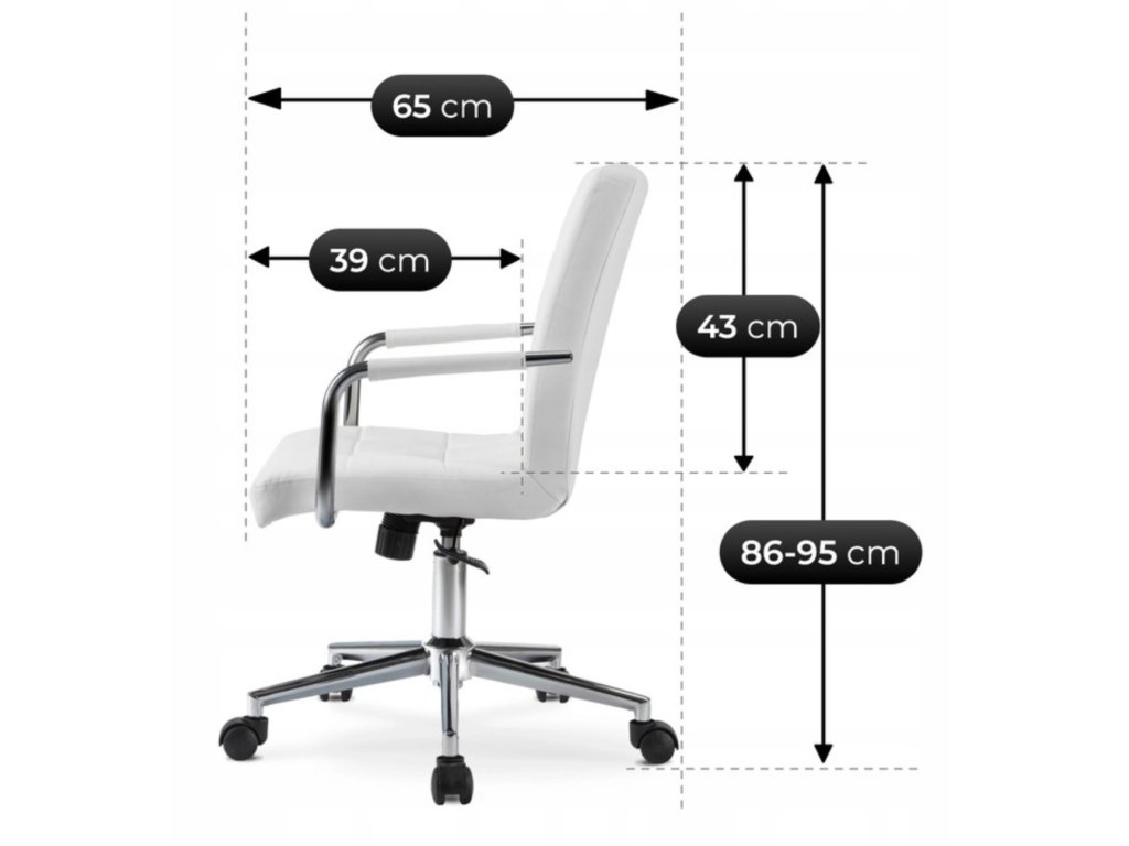 Čalúnenie z kvalitnej eko kože je jemné na dotyk a zároveň odolné pri každodennom používaní. Biela farba dodáva stoličke univerzálny a elegantný vzhľad, ktorý sa hodí do rôznych štýlov izieb.