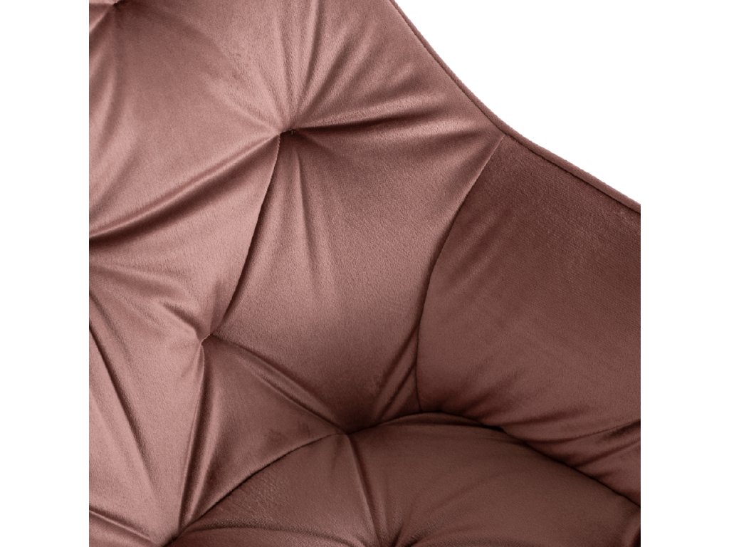 Sedacia časť je vyhotovená z jemného velúru (zamat), ktorý je mäkký na dotyk, drží tvar a dobre sa udržiava v domácich podmienkach. Textília nepriťahuje prach ani chlpy a dlhodobo si zachováva pastelový tón. Ružový velúr vytvára výrazný kontrast so zlatou kovovou základňou, čo podporuje beauty a glamour estetiku mladších používateľov.