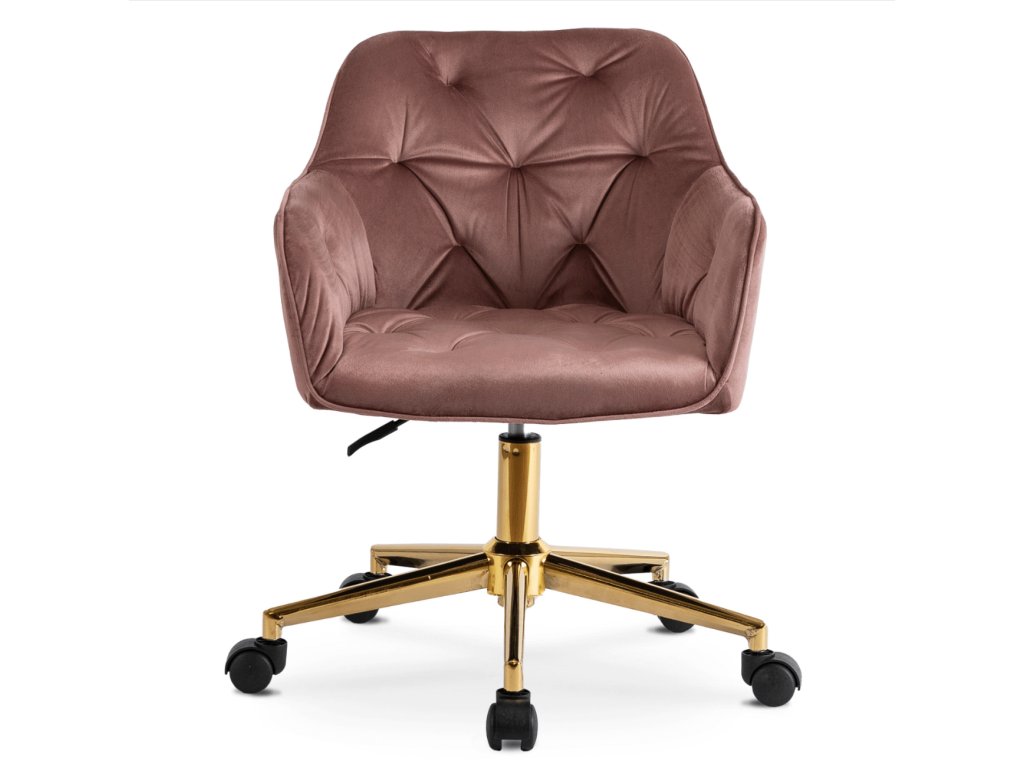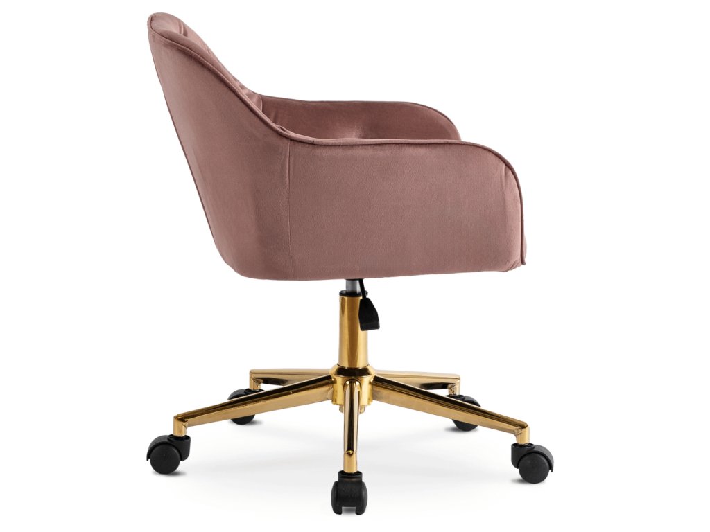 Ružové otočné kreslo Konor spája mäkký zamat, 360° otočenie a zlaté akcenty. Ideálne do dievčenských izieb a k toaletným stolíkom, štýl, pohodlie a praktickosť v jednom.