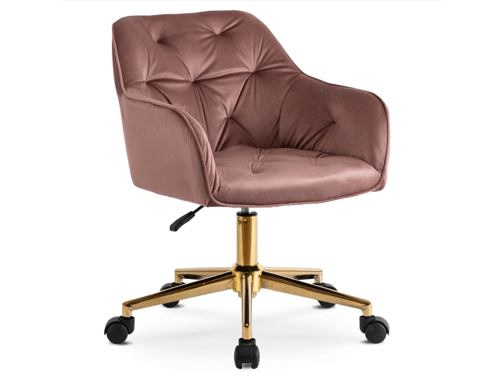 Hľadáte otočnú kancelársku stoličku do dievčenskej alebo študentskej izby, ktorá sa prispôsobí výške stola a zároveň doplní kozmetický alebo kreatívny kútik? Otočná kancelárska stolička ružová velúr zlaté nohy Konor rieši práve tento problém – spája kompaktné rozmery, nastaviteľnú výšku sedenia a pastelový glamour efekt v interiéri. Otočenie o 360° uľahčuje prácu pri učení, kreslení, líčení aj creative-work aktivitách.