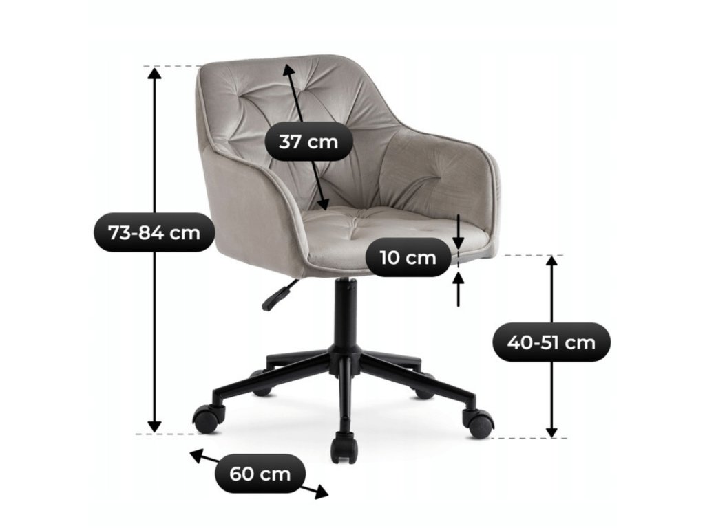 Otočné kreslo nie je len o vzhľade, ale aj o praktickosti. Vďaka základnému mechanizmu "up-down" si môžete jednoducho nastaviť výšku podľa vlastných potrieb. Otočná funkcia o 360 stupňov umožňuje voľnosť pohybu a podrúčky poskytujú oporu pre vaše ruky, čím znižujú napätie v ramenách. Mäkká opierka pomáha udržiavať správnu polohu chrbtice.