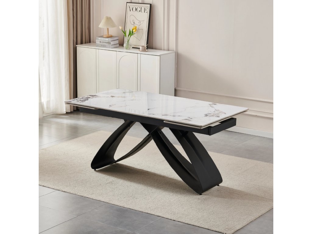 Rozkladací stôl Luigi čierny 160 - 240 cm biely mramor