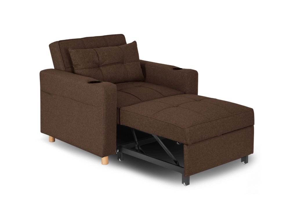 Kreslo ponúka tri polohy, sedenie, pololežanie aj úplné rozloženie. Polohu si zmeníte jednoduchým ťahom, takže sa okamžite prispôsobíte tomu, čo potrebujete. Podrúčky sú vybavené praktickými držiakmi na nápoje, ktoré zvyšujú pohodlie. Vysoké operadlo a priložený vankúš poskytnú príjemnú oporu chrbtice aj hlavy.