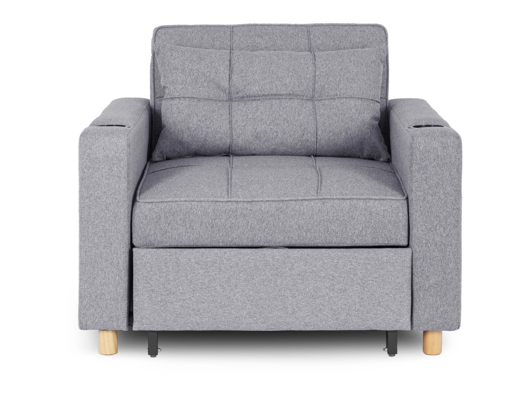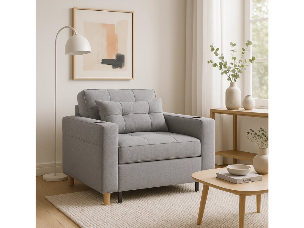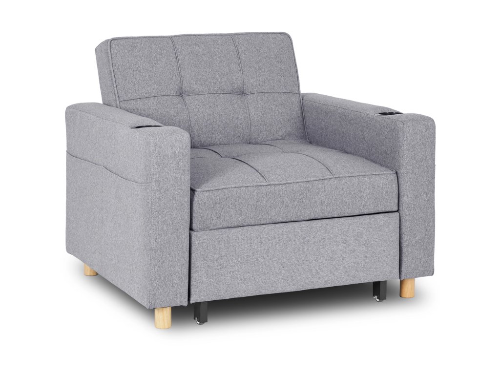 Kreslo je čalúnené príjemnou látkou, ktorá dobre zvláda bežné používanie a ľahko sa udržiava. Mäkká výplň z peny poskytuje pohodlie počas oddychu. Kovová konštrukcia dodáva kreslu stabilitu a uľahčuje manipuláciu pri rozkladaní.