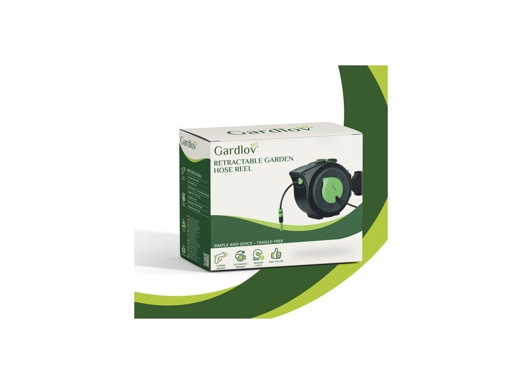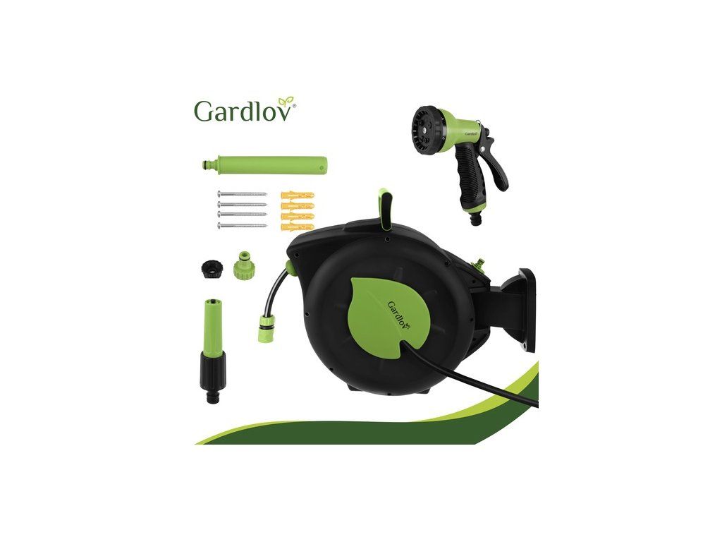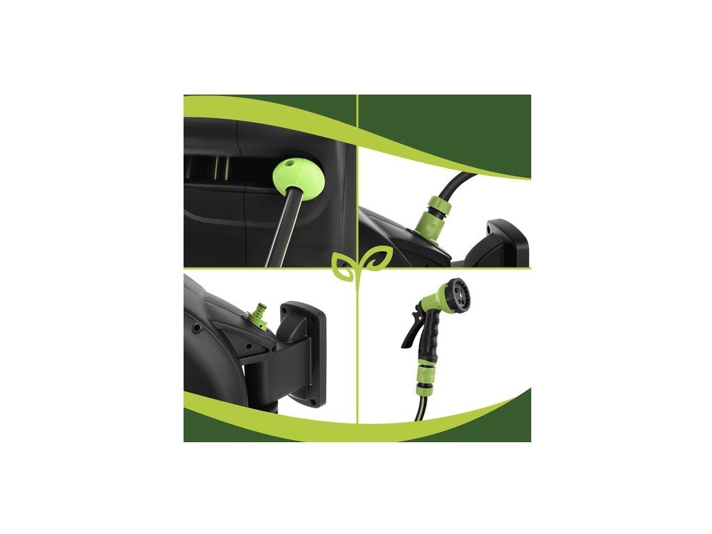 - obsah balenia: navíjač, 30 m hadica, 2 m hadica, pištoľ, nástenný držiak, rýchlospojky, montážna sada (4x skrutky, 4x hmoždinky)
