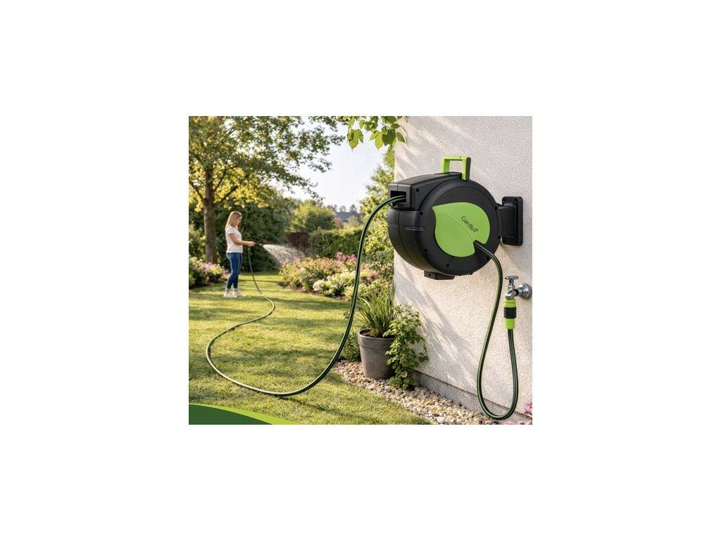 Zabudnite na neestetické kopy hadíc pohodené pri stene domu. Automatický navijak na záhradnú hadicu 30 má robustný pružinový mechanizmus s funkciou zastavenia, ktorý vám umožní vytiahnuť presne toľko hadice, koľko potrebujete, a zaistiť ju v danej polohe bez toho, aby vás „ťahala“ späť. Po dokončení práce stačí krátky pohyb a 30 metrov hadice zmizne v bezpečí puzdra, kde je chránená pred UV žiarením a mechanickým poškodením.