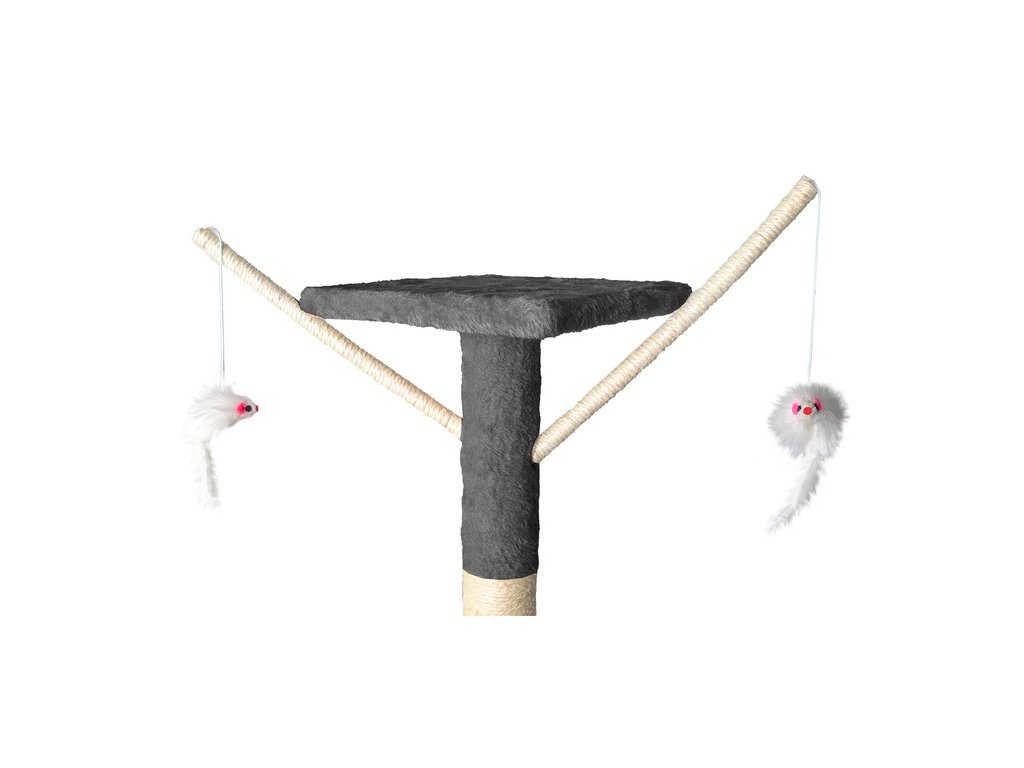 5 poschodové mačacie škrabadlo je vystlané výnimočne jemnou kožušinou, ktorá zaručuje pohodlný odpočinok. Hlavnou výhodou škrabadla je ležadlo. Mačka bude môcť voľne odpočívať. 5 pozorovacích úrovní uspokojí zvedavosť mačky. V prípade nudy môžete loviť aj mäkkú loptičku / hračku pripevnenú na gumičke - môžete ju chytiť a zaútočiť.
