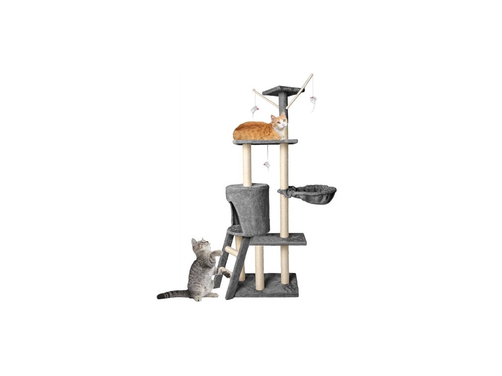Škrabadlo pre mačky, 5 poschodí, 138 x 55 cm, šedé.