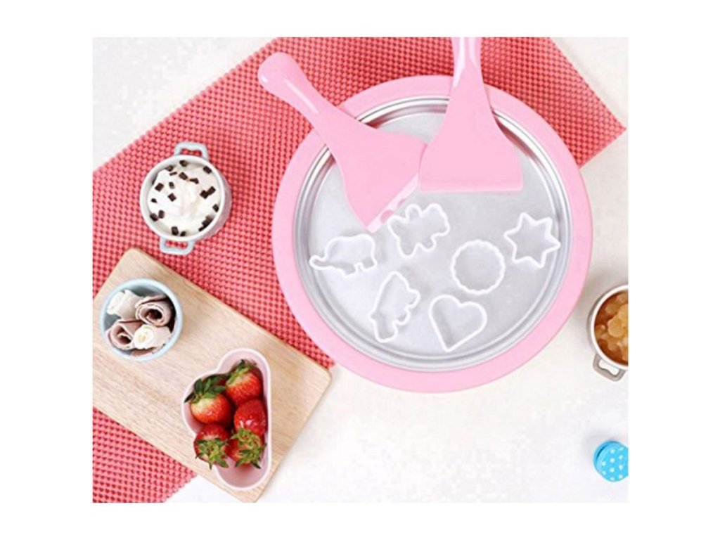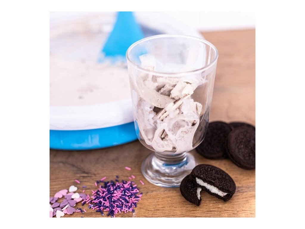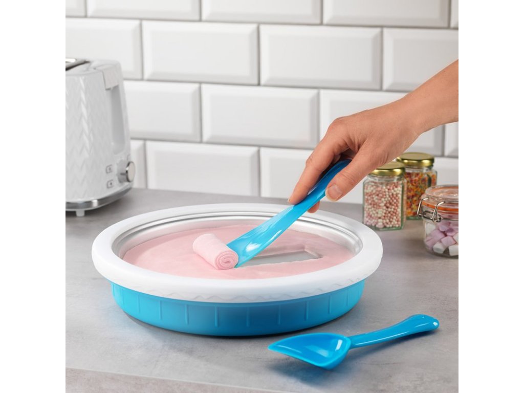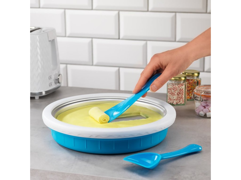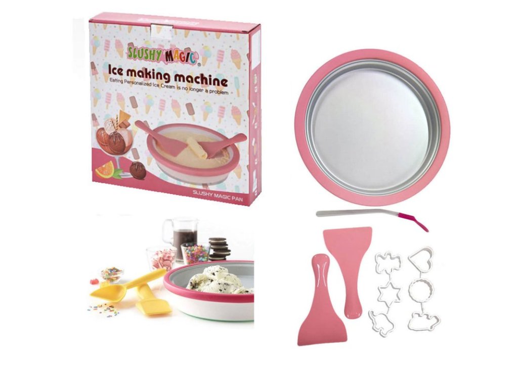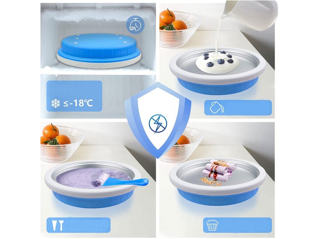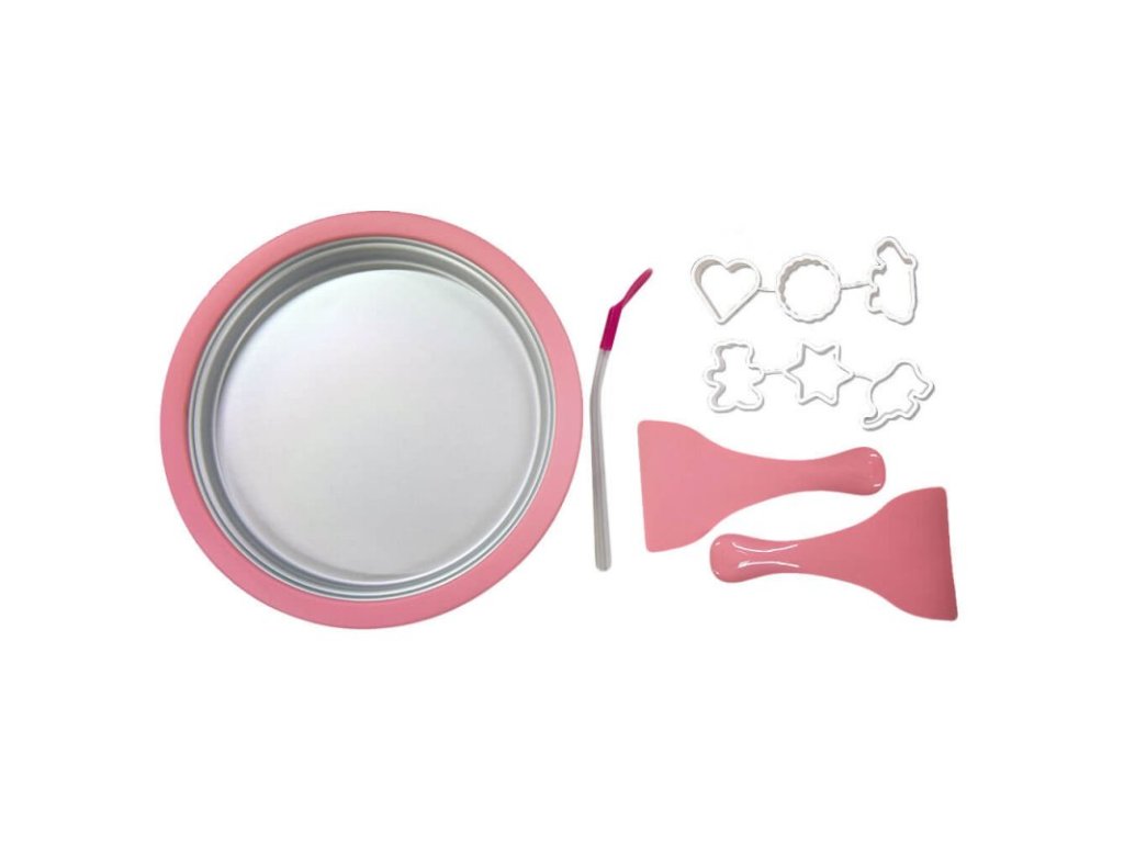 Vychutnajte si veľa zábavy s touto súpravou na domácu výrobu zmrzliny. Položte zmrzlinovú dosku aspoň na 24 hodín do mrazničky na -23 stupňov celzia. Zmes, ktorú si vytvoríte nalejte na tanier a začnite s tvarovaním. Takto si viete vyrobiť lahodné zmrzlinové dezerty s topingom aj so šľahačkou.